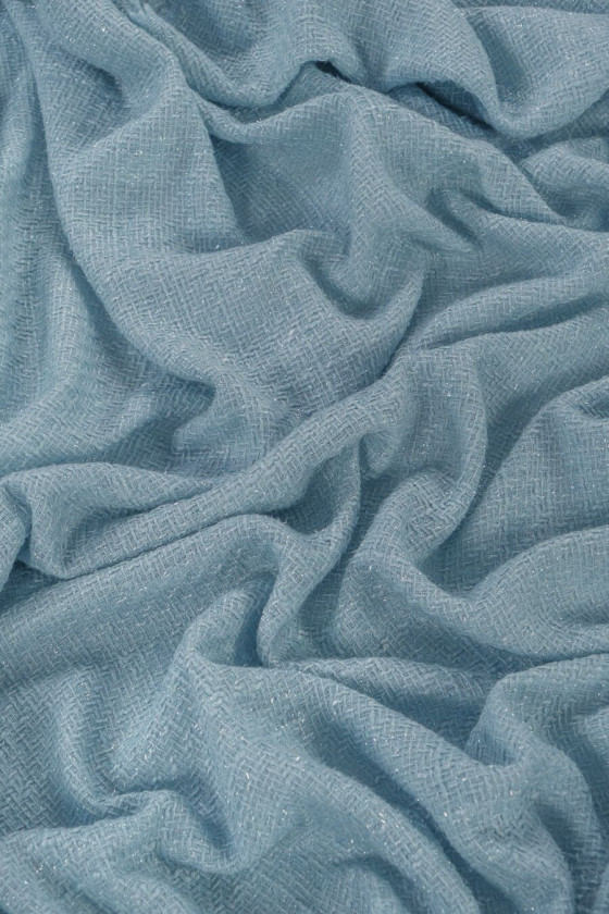 Itališkas chanel kostiumo audinys džinsinio mėlynumo su į jį įaustu lurekso siūlu.