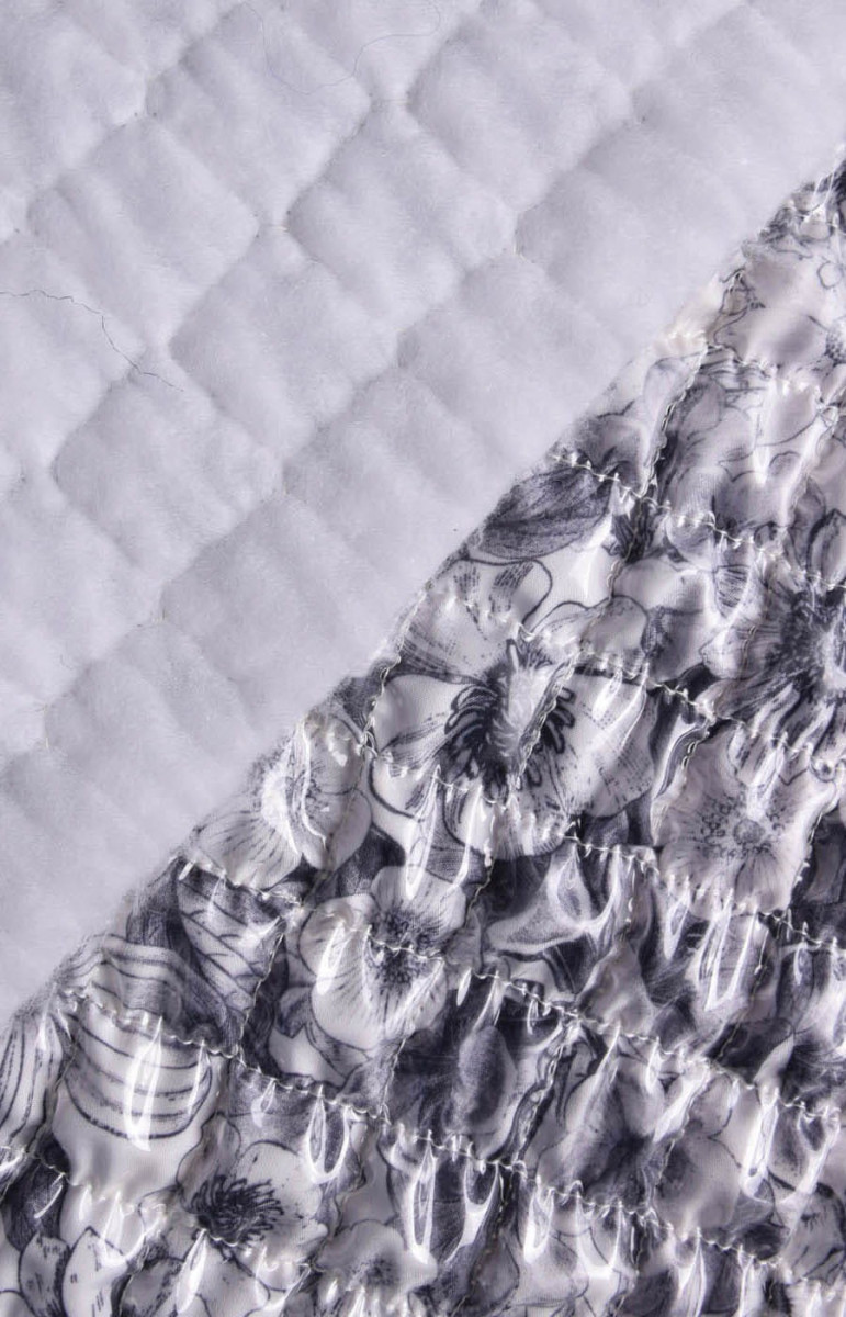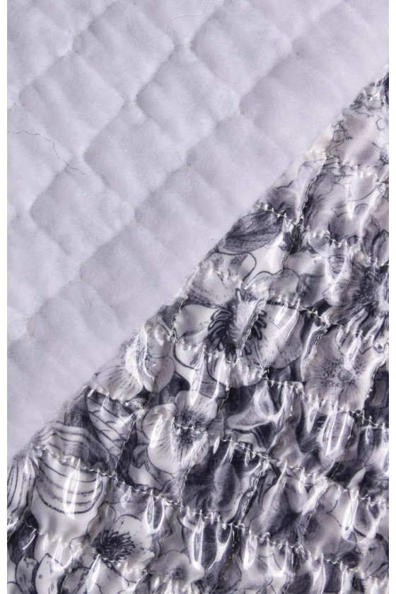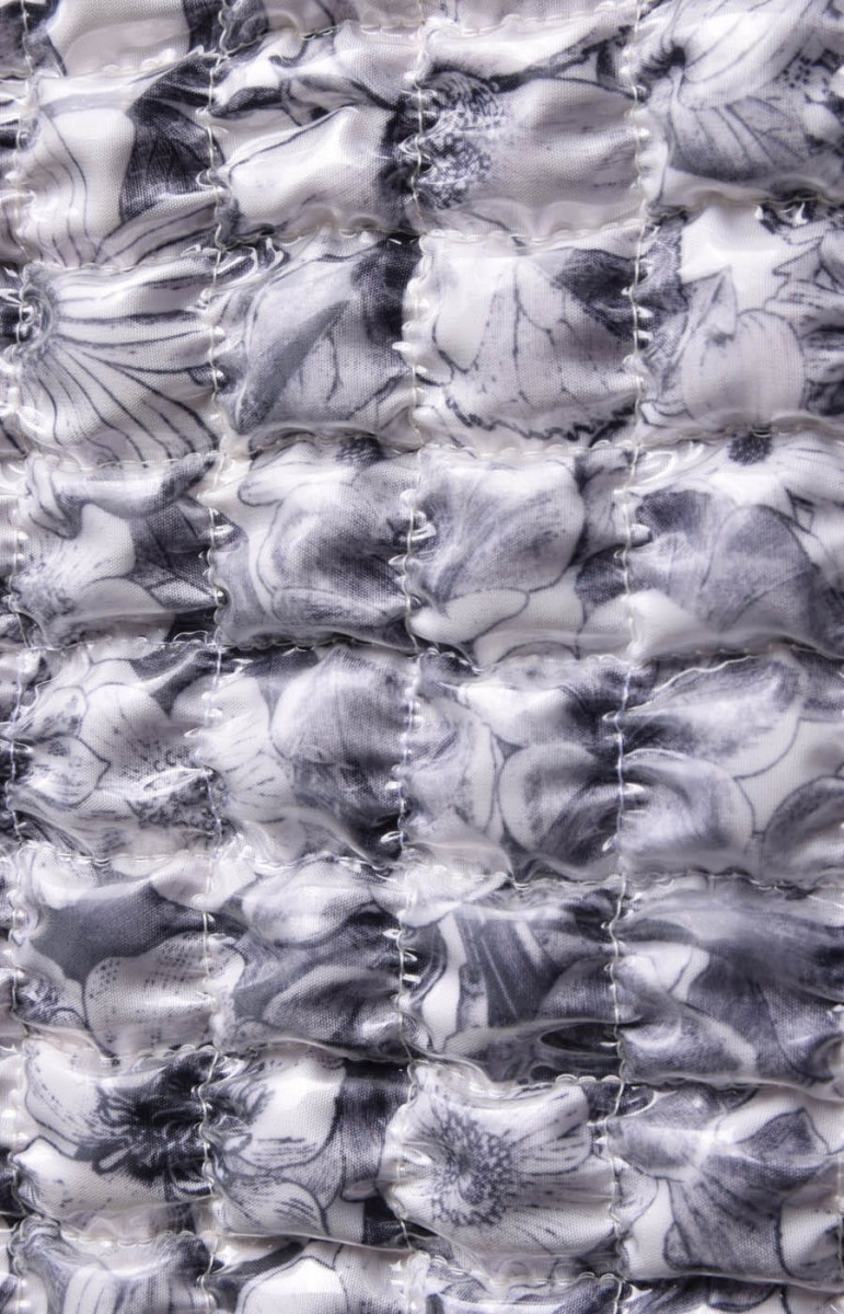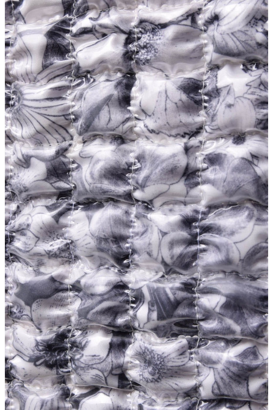 Išskirtinis striukės audinys, izoliuotas, dygsniuotas, padengtas folija. Jis taip pat gali būti naudojamas įdomiems maišams siūti.