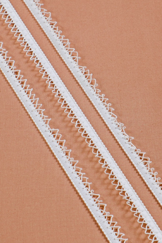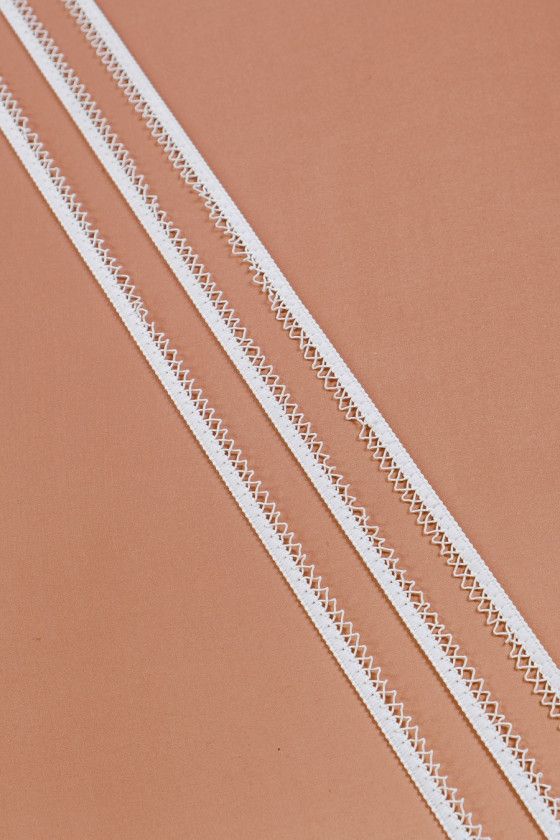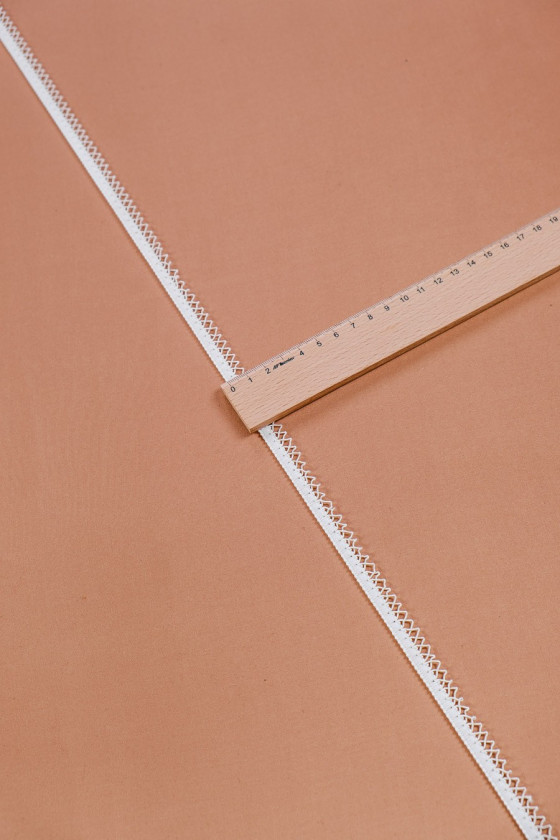 Itališka galanterijos juosta ekru spalvos. Pagaminta iš elastinės juostos, prie kurios buvo prisiūta virvelė. Idealiai tinka vestuvių ir medvilninių audinių apdailai.