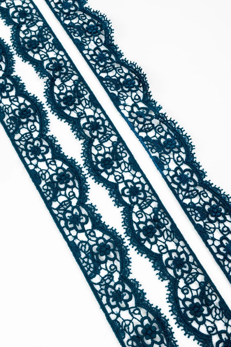 Galanterijos juosta - nėriniai mėlyname turkyje.
