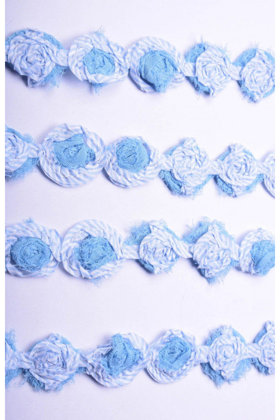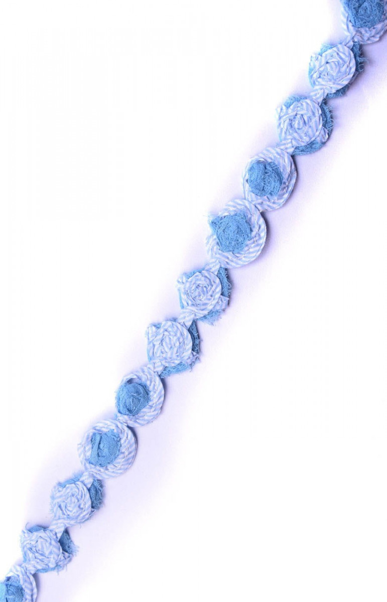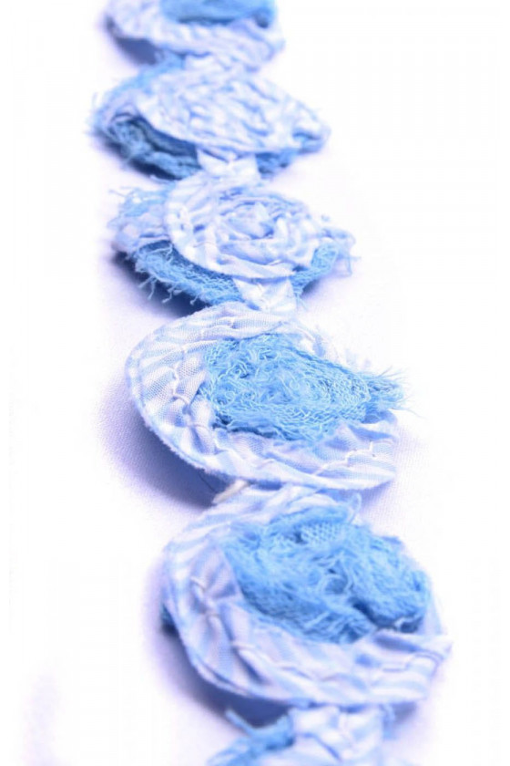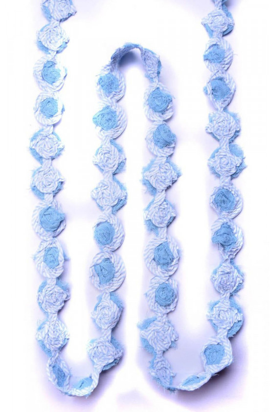 Įdomi baltos ir mėlynos spalvos galanterijos juosta priedams ar apdailai. Plotis yra apie 3 cm.