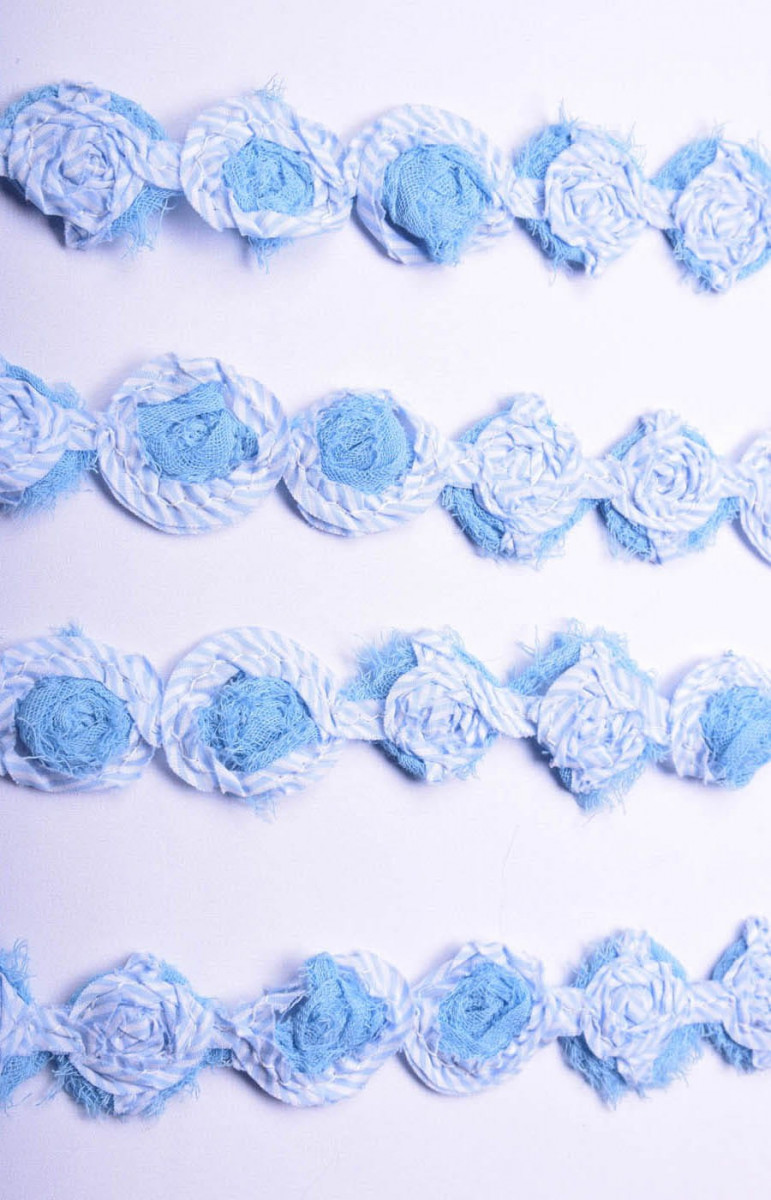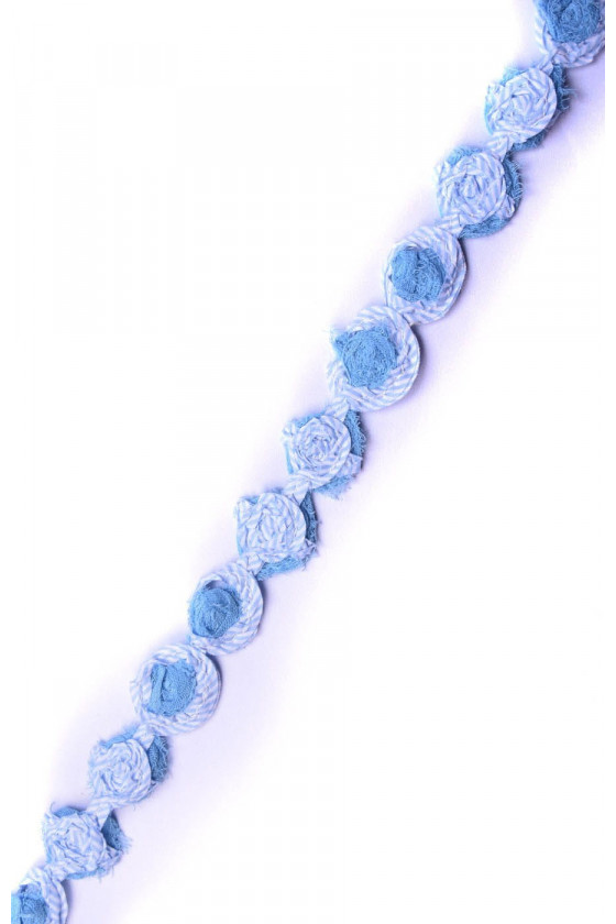 Įdomi baltos ir mėlynos spalvos galanterijos juosta priedams ar apdailai. Plotis yra apie 3 cm
