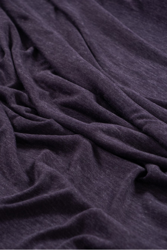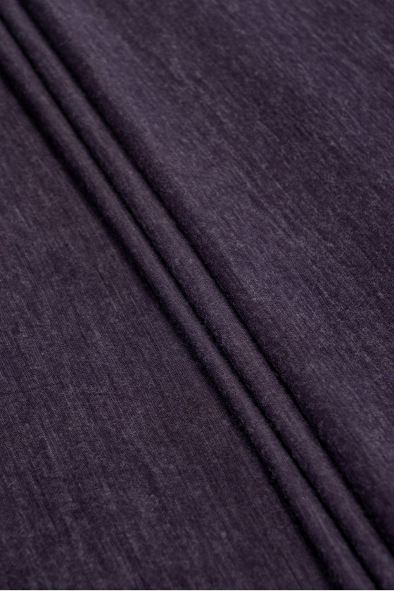 Itališkas, plonas megztinis megztas audinys prislopintos violetinės spalvos melanžo, austas iš natūralios vilnos su akrilo mišiniu.