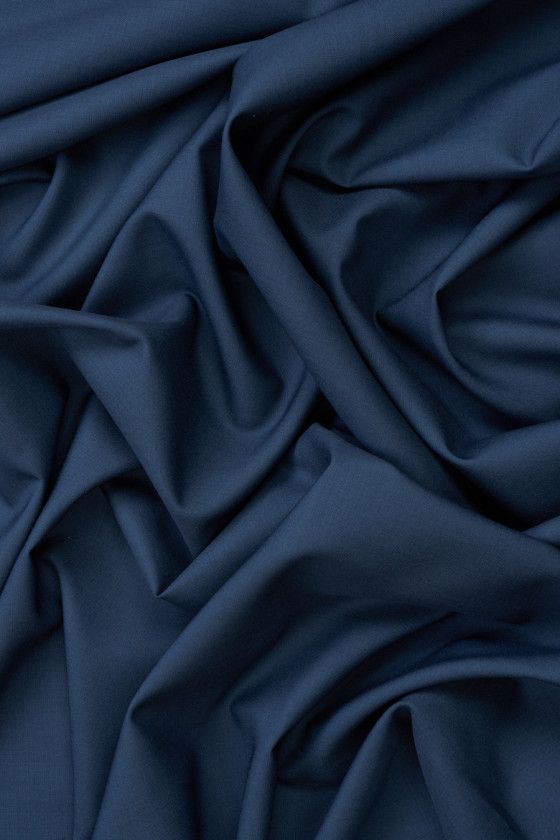 Itališka kostiumų vilna šviesiai tamsiai mėlyna. Minkštas, neelastingas, lengvas ir plonas audinys. Tai puikiai tinka suknelės ar sijono siuvimui.
