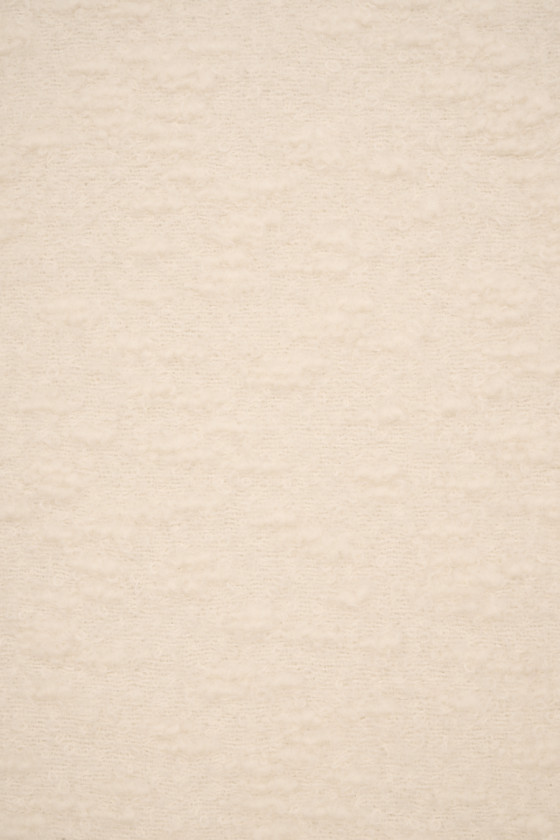 Itališkas boucle kailio audinys ecru spalvos. Storesnis, mėsingas, būdingos tekstūros audinys, austas iš natūralios vilnos, alpakos ir poliamido. Tai puikiai tinka viršutiniams drabužiams, tokiems kaip paltas, striukė, liemenė. Rekomenduojamas sausas valymas.