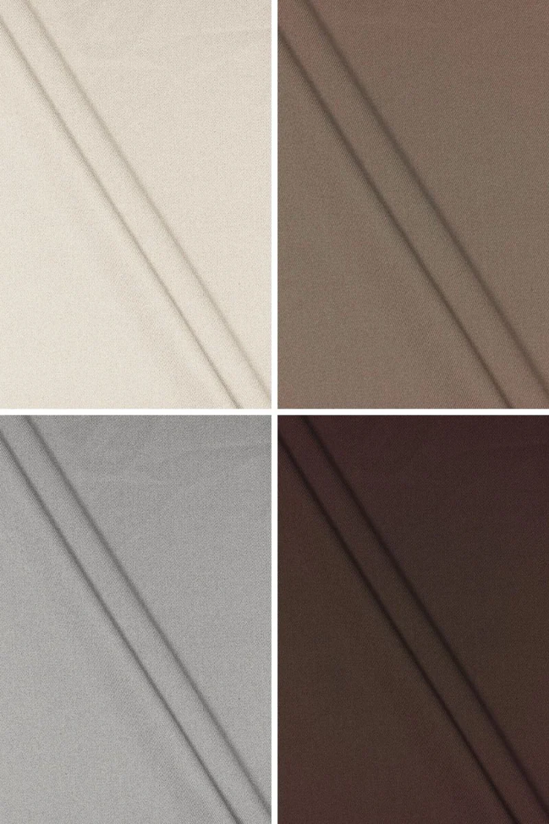 Labai geros kokybės itališkas 100% vilnos audinys įvairiose spalvose. Rudens ir žiemos rūšių medžiaga. Jis yra mėsingas, minkštas, labai malonus suimti ir šiek tiek spyruoklės ant siūlų. Pagaminta ruoželiniu pynimu. Audinys sujungia klasiką ir eleganciją. Tai puikiai tiks siūti striukę, kelnes, sijoną ir suknelę.