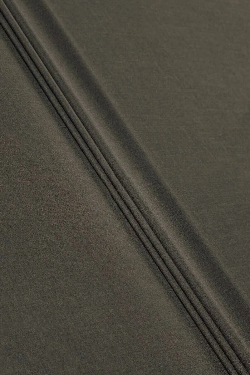 Itališkas kostiumo audinys pagamintas iš 100% natūralios vilnos pilkai rudos spalvos. Medžiaga turi melanžinį pynimą, ji yra neelastinga, vidutinio storio. Puikiai tinka siūti tokius drabužius kaip: kostiumas, kostiumas, suknelė, sijonas ar kelnės.