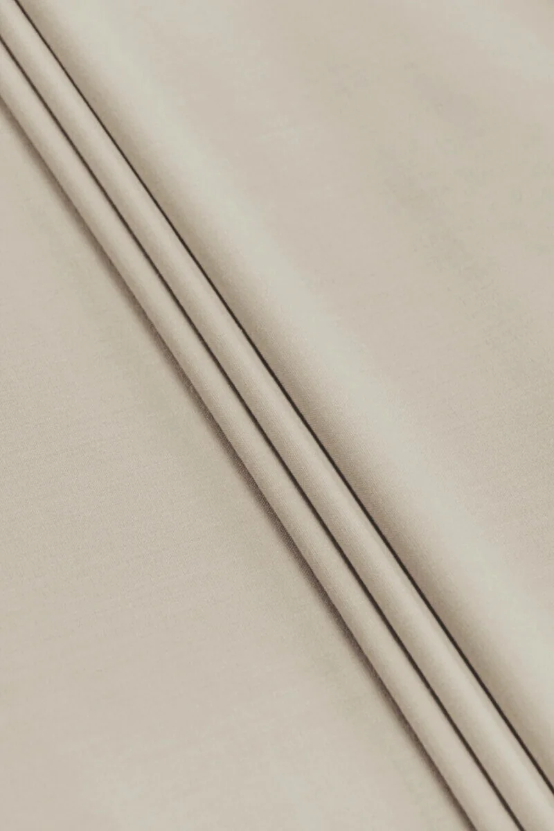 Itališkas kostiumų audinys pagamintas iš 100% vilnos, natūraliau pilkai smėlio spalvos. Mažesnio svorio audinys, neelastingas su lygiu, švelniai pynimo audiniu. Puikiai tinka siūti kostiumą, kostiumą, kelnes, suknelę ar sijoną. Natūralus audinys žmonėms, mėgstantiems klasikines spalvas.