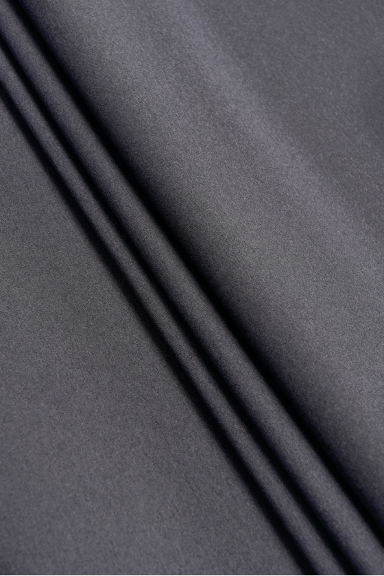 Storesnis kostiumas (naras) dvipusis - pilkas megztinis vienoje pusėje, tamsiai violetinis slyvų blizgus kostiumas kitoje. Audinys yra šiek tiek elastingas.
