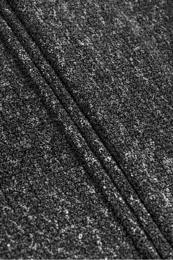 Itališkos vilnos audinys su įdomia kilpa pynimas, austas iš natūralios vilnos su poliesterio mišiniu. Spalvos: juoda, pilka, ecru. Storesnis audinys idealiai tinka megztinio megztinio siuvimui. Mes rekomenduojame sausą valymą.