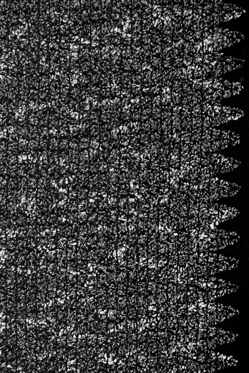 Itališkos vilnos audinys su įdomia kilpa pynimas, austas iš natūralios vilnos su poliesterio mišiniu. Spalvos: juoda, pilka, ecru.