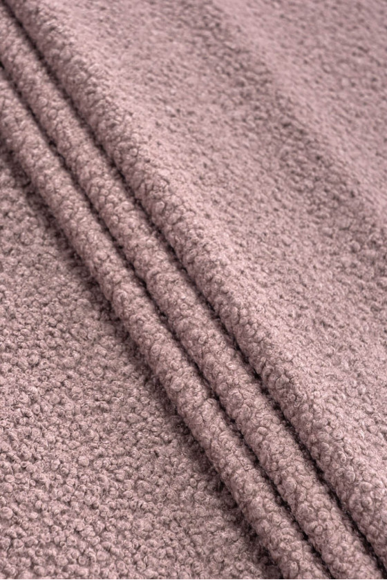 Itališkas boucle kailio audinys purvinos rožinės spalvos. Storesnis, mėsingas audinys su būdinga tekstūra - puikiai tinka palto, švarko ar liemenės siuvimui.