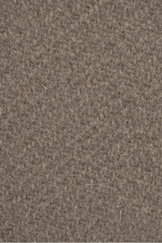 Itališkas kailio audinys tamsios, šaltos smėlio spalvos su pynimu. Austi iš natūralios vilnos ir poliamido. Vilnoniai audiniai idealiai tinka viršutiniams drabužiams (paltui, striukei, liemenei), nes jie šildo ir tuo pačiu leidžia odai kvėpuoti.