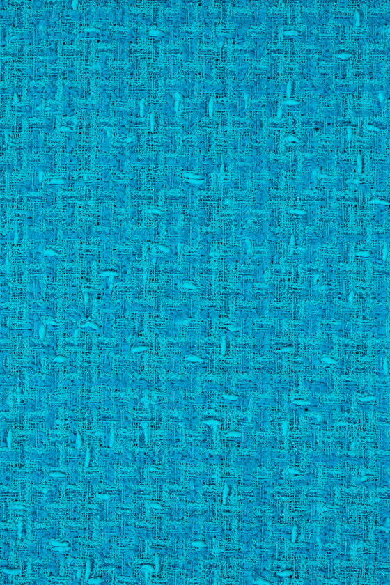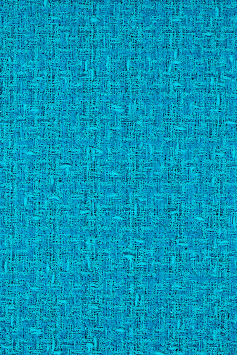 Itališkas chanel kostiumo audinys turkis, dekoruotas blizgančiu tos pačios spalvos siūlu. Audinys su šiek tiek išgaubta struktūra ir laisvesniu pynimu, minkštas, neelastingas. Tai puikiai tinka siūti tiek elegantiškus, tiek kasdienius drabužius. Puikus energingos spalvos pasiūlymas puikiai tiks kostiumo, suknelės ar sijono siuvimui.