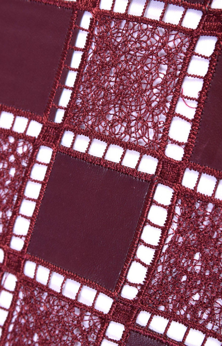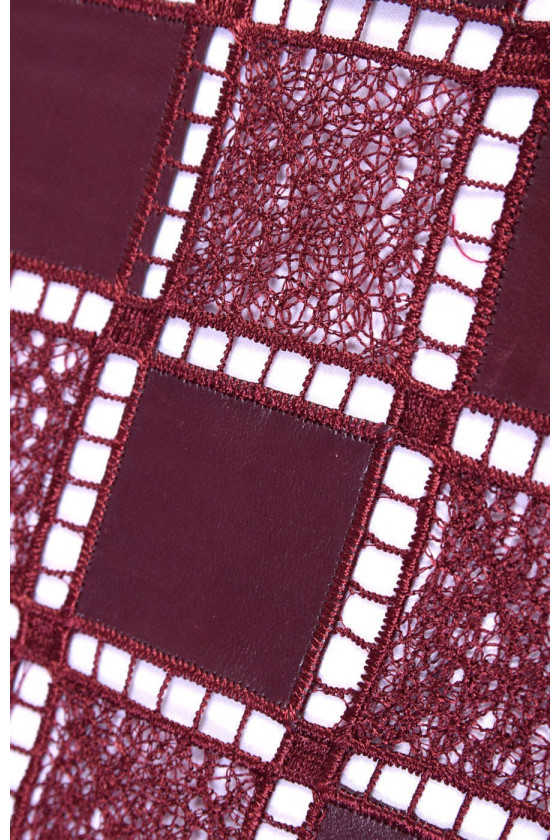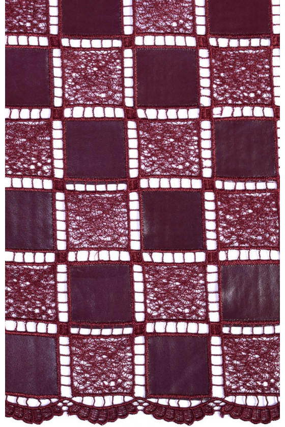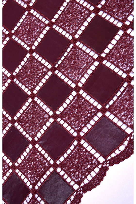 Burgundijos eko oda su šaškių lentos raštu. Baigta dantimi iš abiejų pusių.