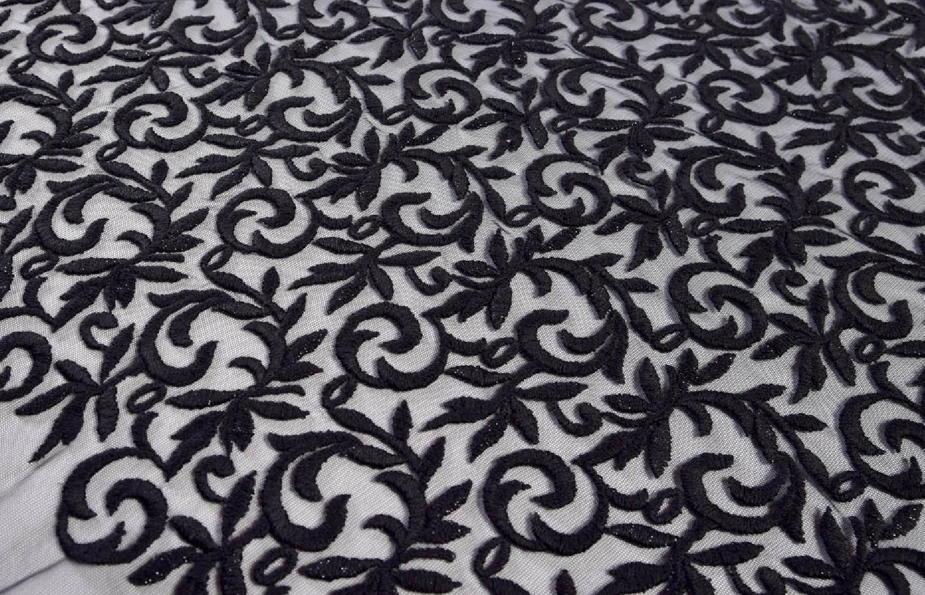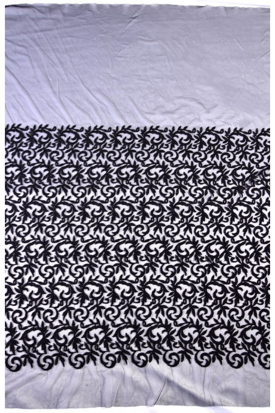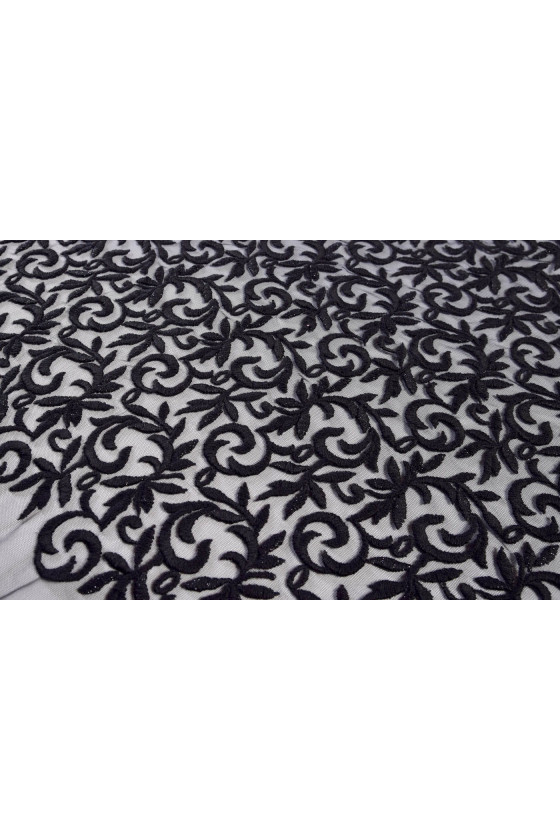 Įdomus tiulio pasiūlymas su siuvinėjimais. Storas, mėsingas siuvinėjimas. Audinys puikiai tinka vakarinėms suknelėms ar palaidinėms. Siuvinėjimo plotis yra apie 82 cm.