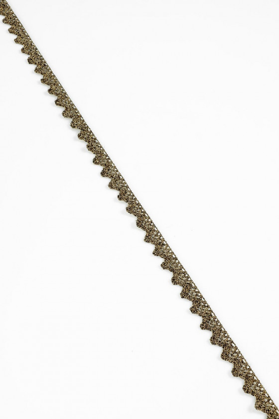Itališka galanterijos juosta juodos spalvos su aukso lurekso siūlu. Įdomus "nėrimo darbo" efektas.