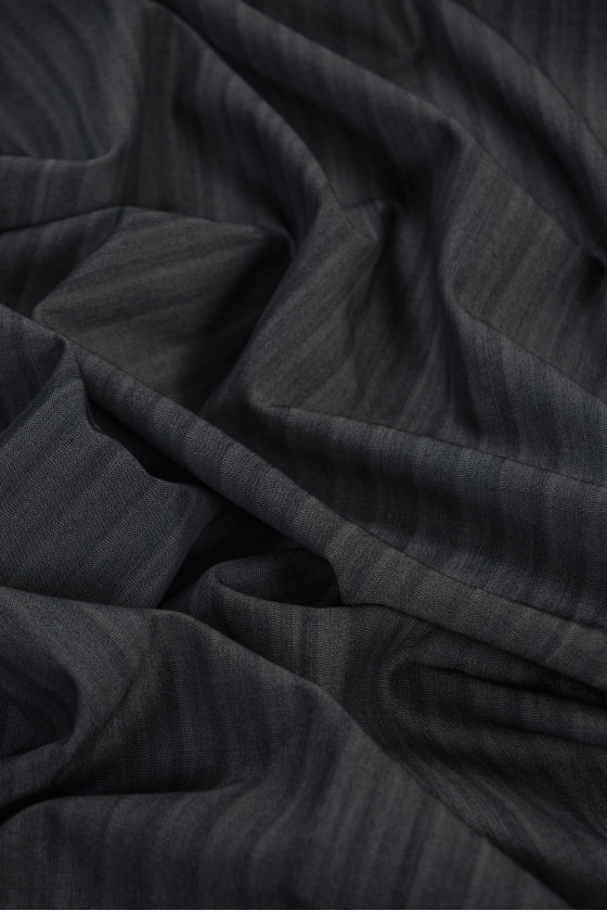 Itališka kostiumų vilna su juostelėmis, 2 cm pločio juoda ir pilka - dviejų tonų. Minkštas, mėsingas, neelastingas audinys - puikiai tinka kostiumo, kostiumo, kelnių, sijono, suknelės siuvimui.