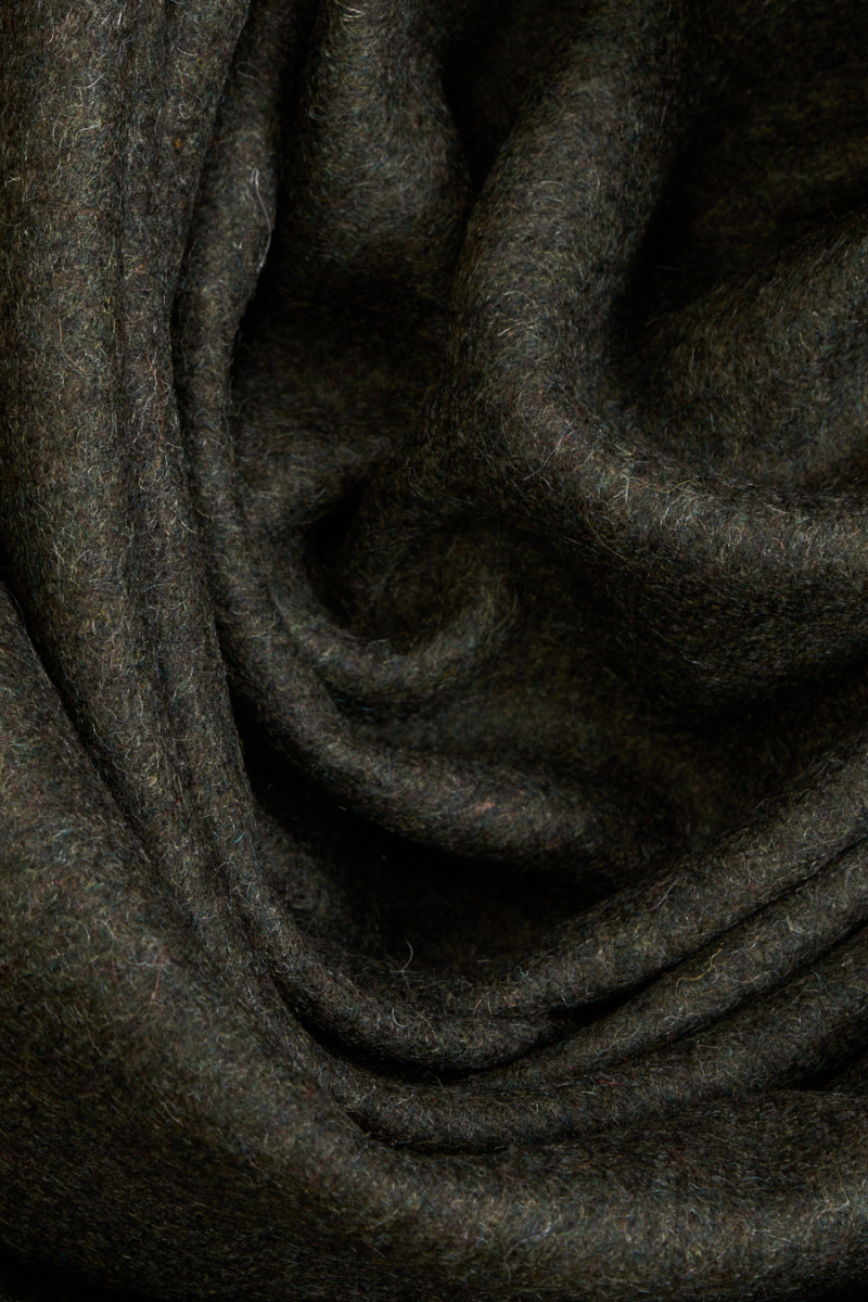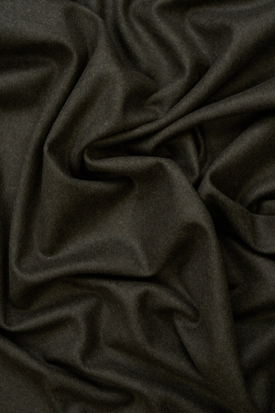 Itališko kailio audinys, austas iš natūralios chaki spalvos vilnos. Audinys yra šiek tiek standus, su pynimu. Vilnoniai audiniai idealiai tinka viršutiniams drabužiams (paltui, striukei, liemenei), nes jie šildo ir tuo pačiu leidžia odai kvėpuoti.