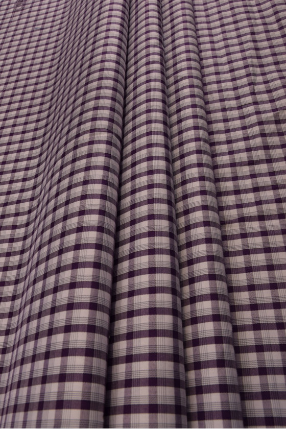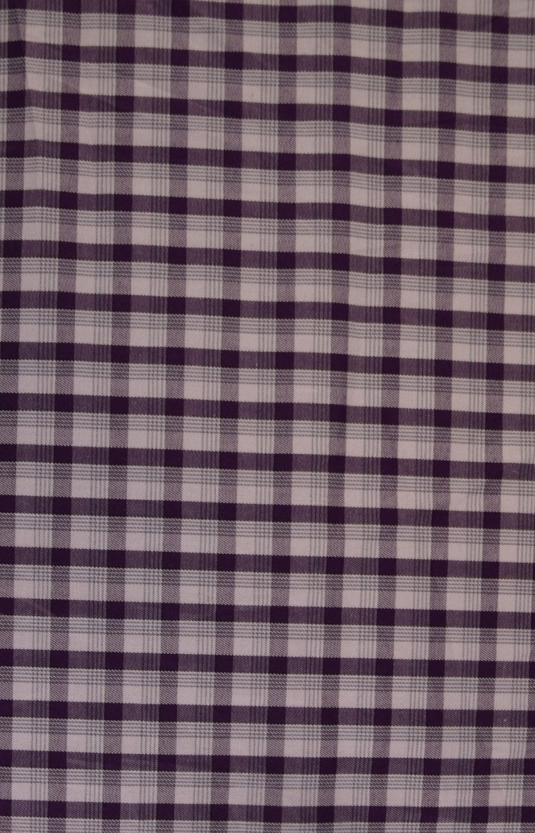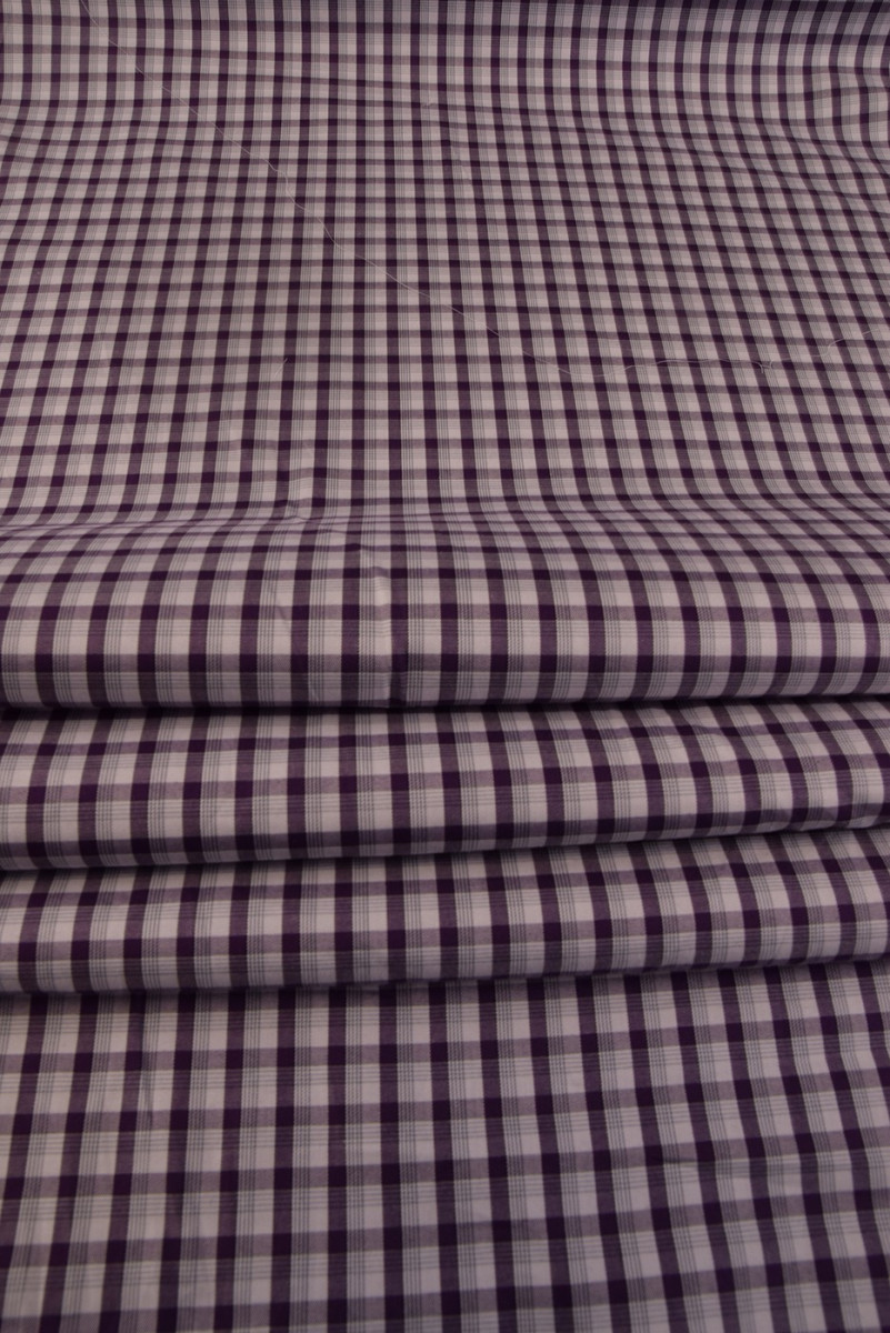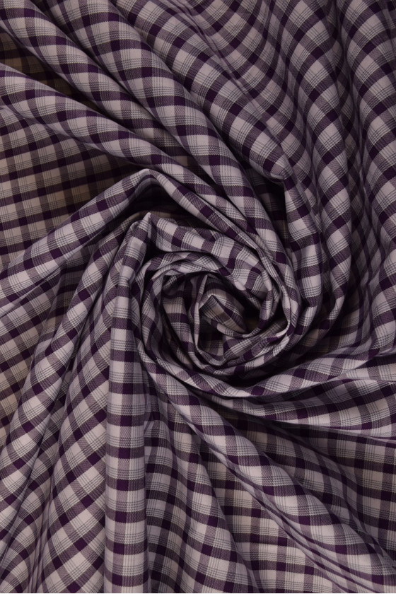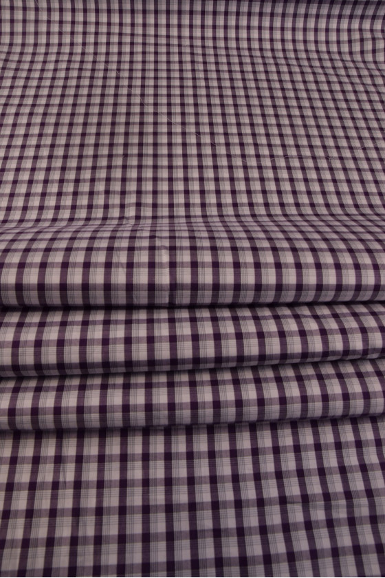 Marškinių medvilnė su baltu ir violetiniu smulkiu čekiu yra 100% natūrali ir perdirbama. Iš jo pagaminti drabužiai puikiai tinka karštoms dienoms. Rekomenduojame siūti marškinius, palaidines, sukneles ar sijonus.
