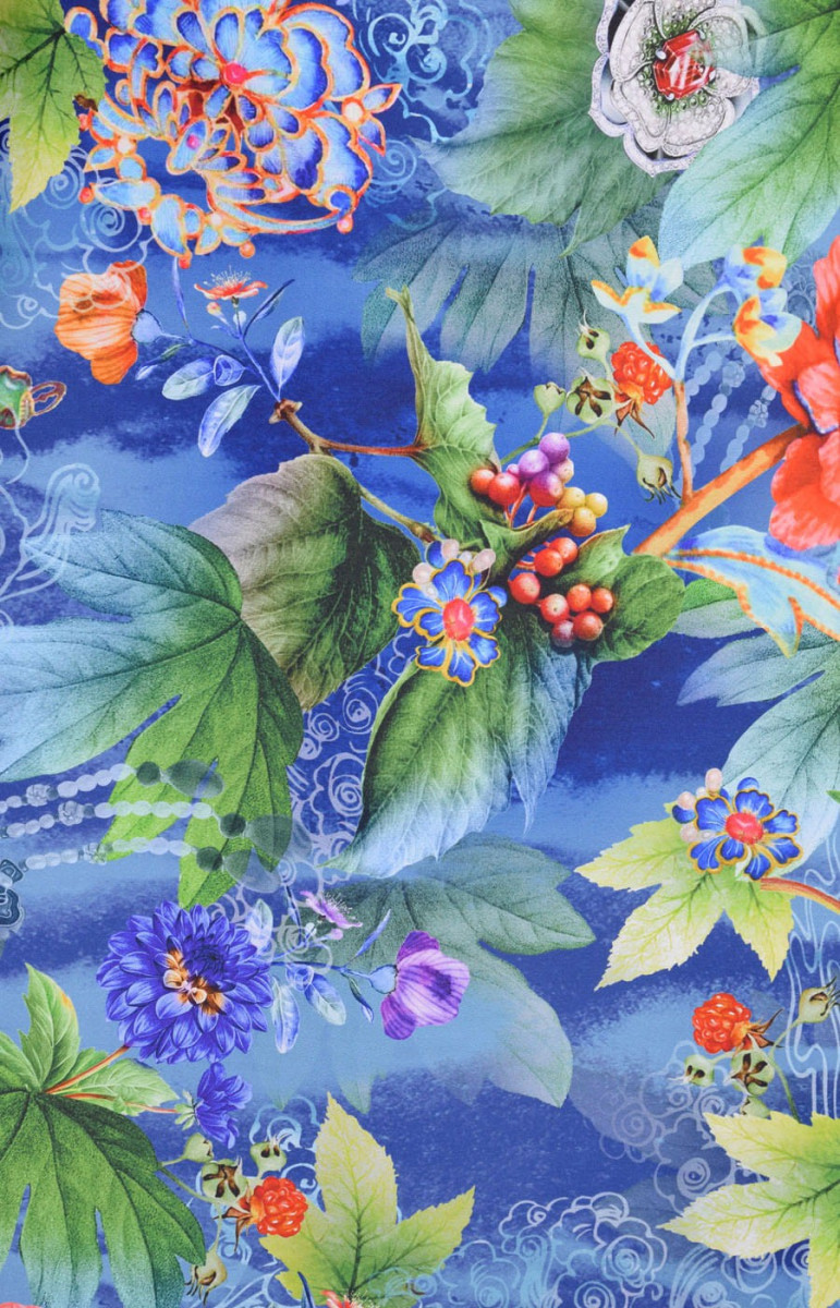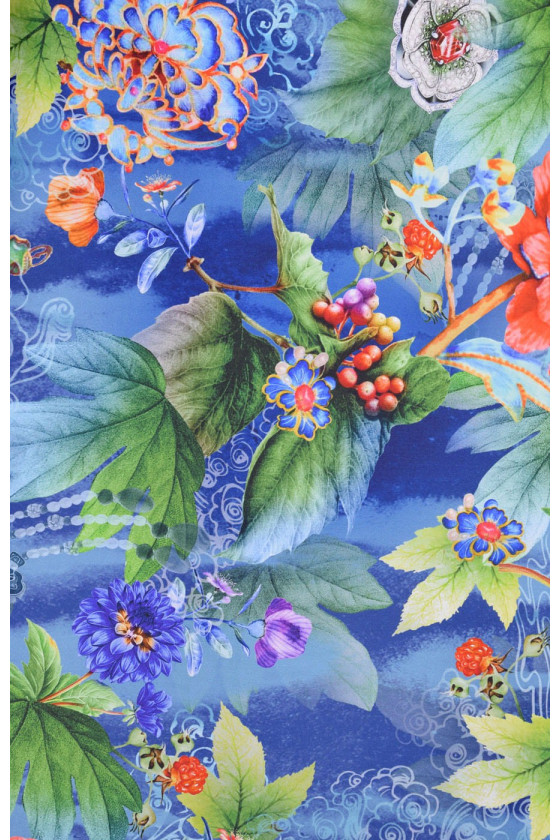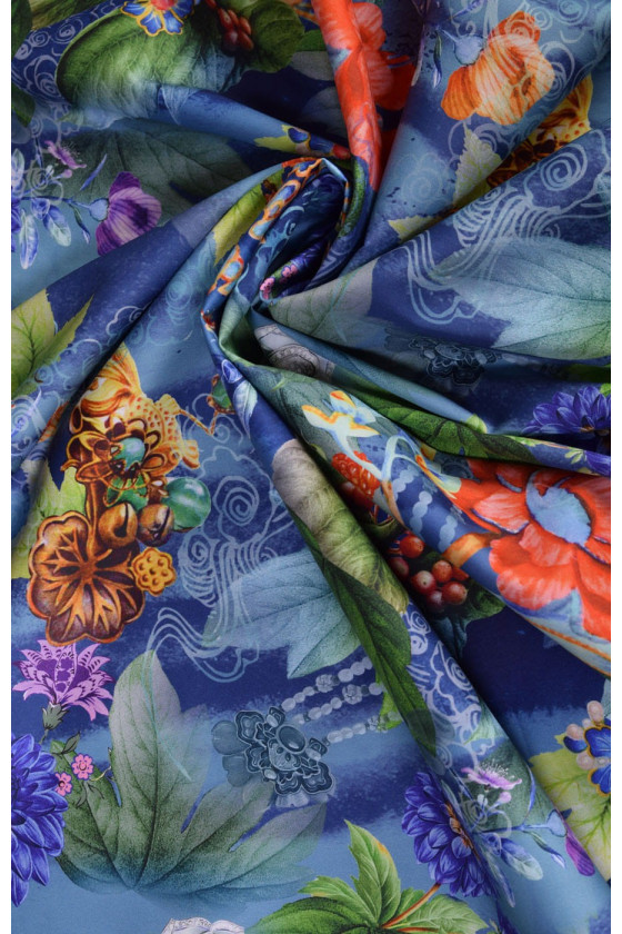 Plona 100% medvilnė su labai išraiškingu gėlių raštu. Neelastingas audinys. Puikiai tinka raštuotiems marškiniams ar suknelėms.