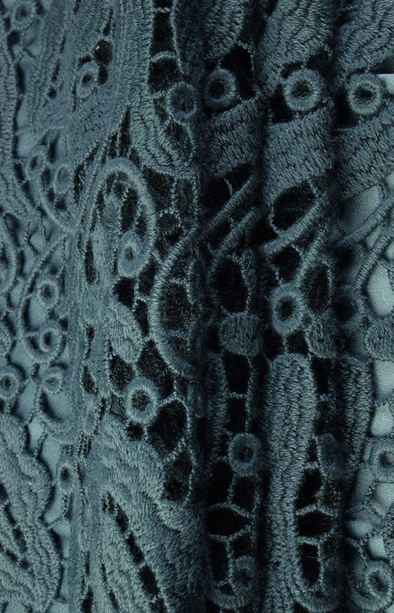 Paskutinis gipiūrinių nėrinių kuponas turkio spalvos turkio spalvos, kurio matmenys: 75 cm* 120 cm.