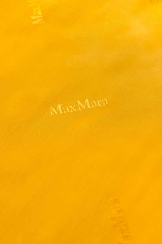 Itališkas viskozės pamušalas geltonai, pasirašytas gerai žinomo mados namų pavadinimu. Minkštas audinys su lygiu pynimu, šiek tiek blizgantis. Puikiai tinka kostiumo, striukės, striukės ar palto pamušalui.