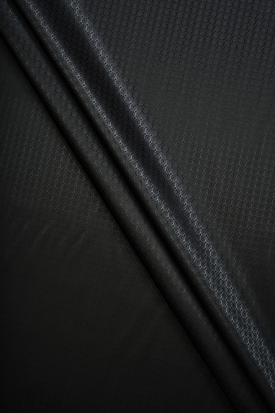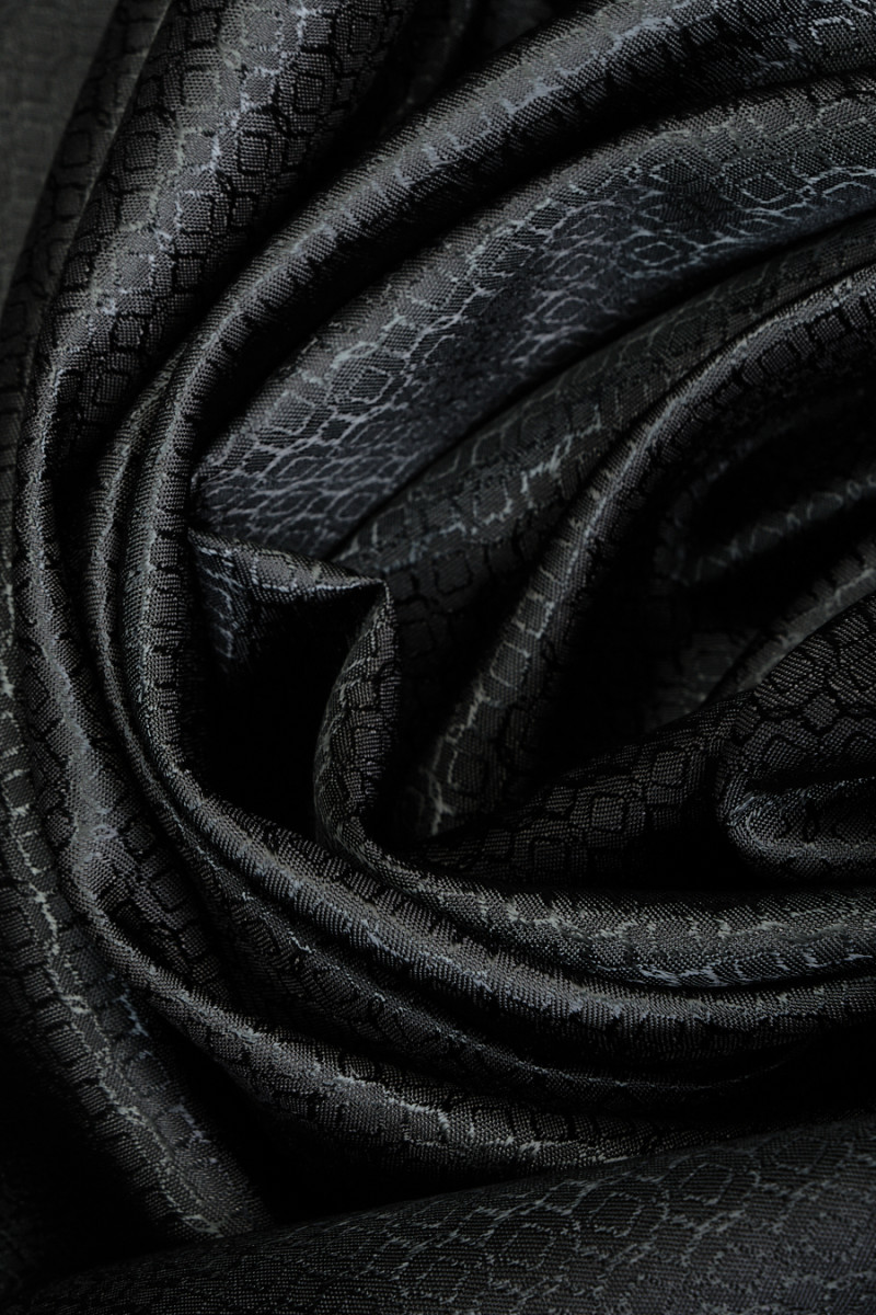 Itališkas žakardo pamušalas juodas su mažu juodųjų deimantų motyvu. Audinys yra neelastingas, turintis labai kilnų blizgesį. Dėl natūralios sudėties jis puikiai tinka kaip švarko ar palto pamušalas.