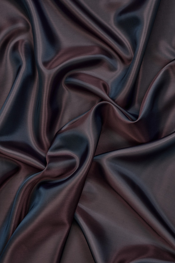 Itališkas acetato pamušalas, austas iš dviejų spalvų siūlų - bordo ir violetinės spalvos, kuris sukuria įdomų dviejų atspalvių. Audinys yra neelastingas, šiek tiek blizgus. Puikiai tinka paltų, striukių, liemenių, striukių pamušalui.