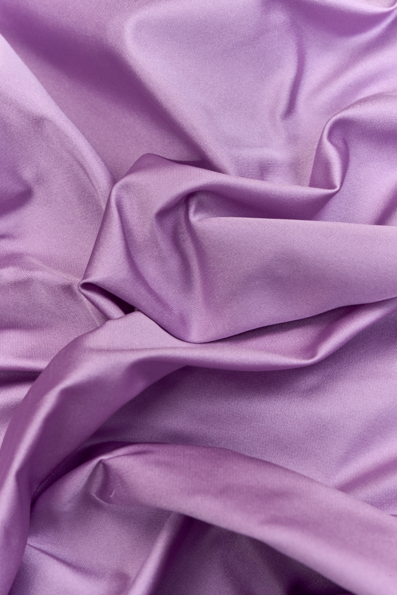 Itališkas poliesterio taftos audinys šviesiai violetinės spalvos. Taftas yra plonas, bet standus audinys, baigtas subtiliu blizgesiu. Puikiai tinka siūti suknelę, palaidinę, marškinius, sijoną.