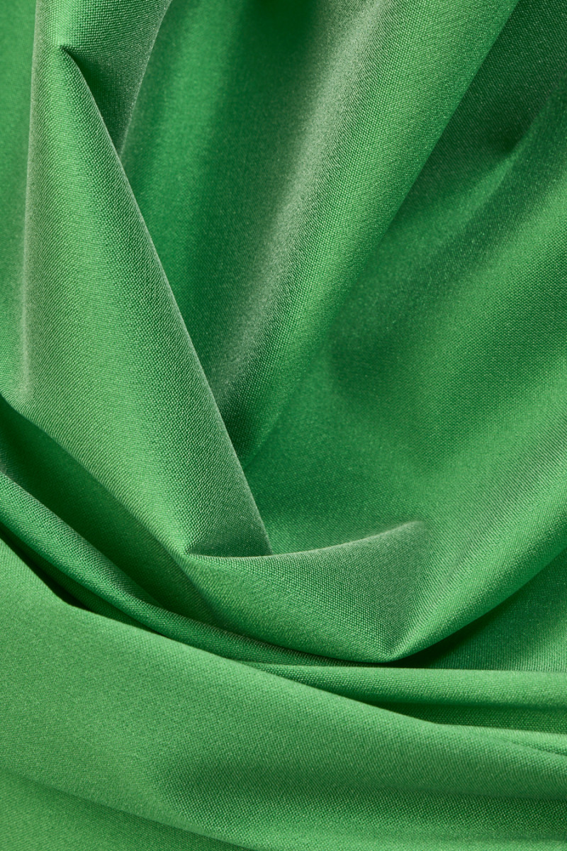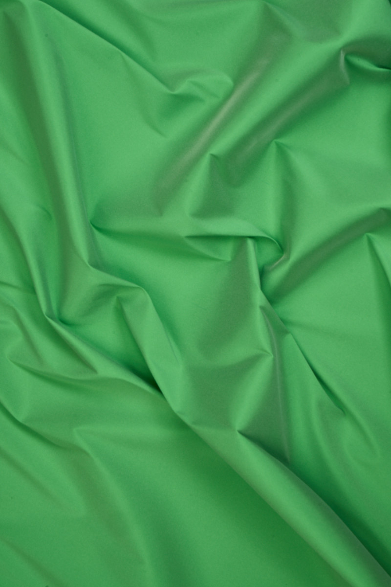 Itališkas poliesterio taftos audinys, austas iš dviejų spalvų siūlų - šviesiai ir tamsiai žalios spalvos, sukuriantis dviejų atspalvių efektą. Audinys yra plonas, bet standus, baigtas subtiliu blizgesiu, pridedant elastano su lygiu pynimu. Puikiai tinka siūti suknelę, palaidinę, marškinius, sijoną.