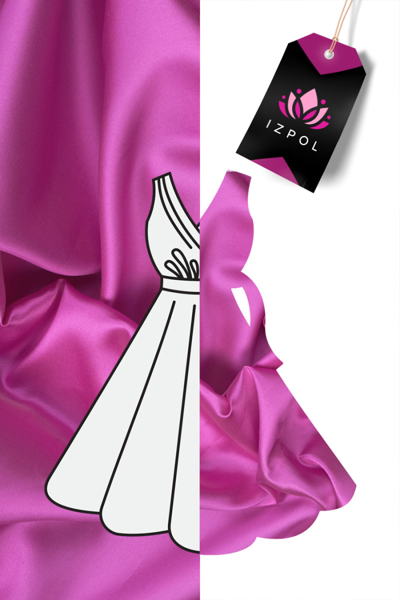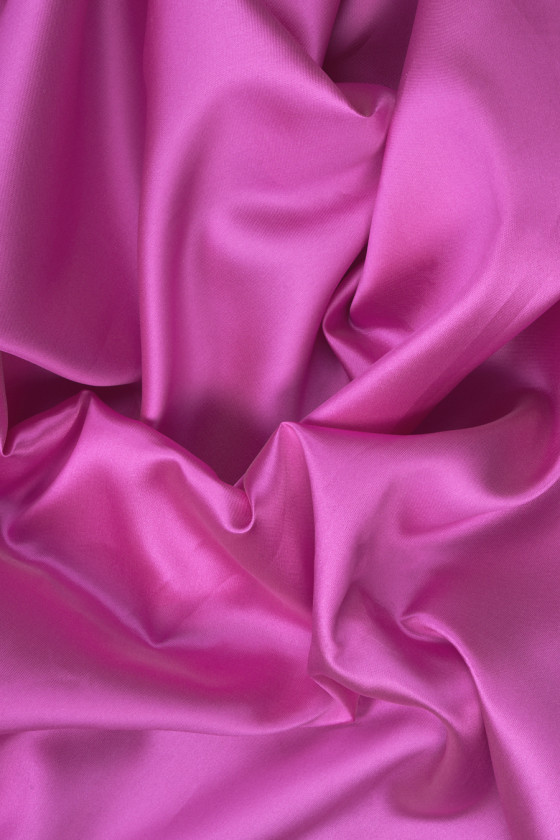 Itališkas poliesterio šilko taftos audinys, austas iš dviejų spalvų siūlų: fuksijos ir baltos, kurios sukuria dviejų atspalvių efektą. Taftas yra plonas, bet standus audinys, pasižymintis būdingu subtiliu blizgesiu, audinys turi paprastą, briaunotą pynimą, primena mikado.