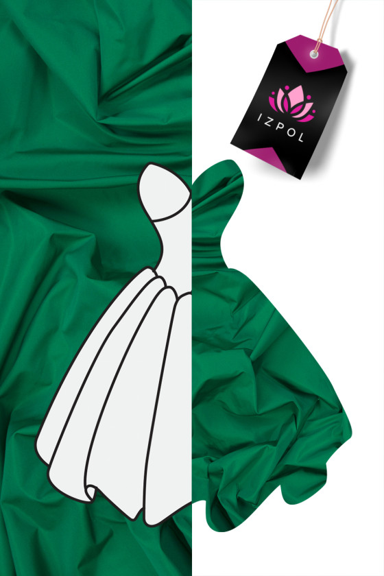 Itališkas poliesterio taftos audinys žalios spalvos. Taftas yra plonas, bet standus audinys, pasižymintis būdingu subtiliu blizgesiu.