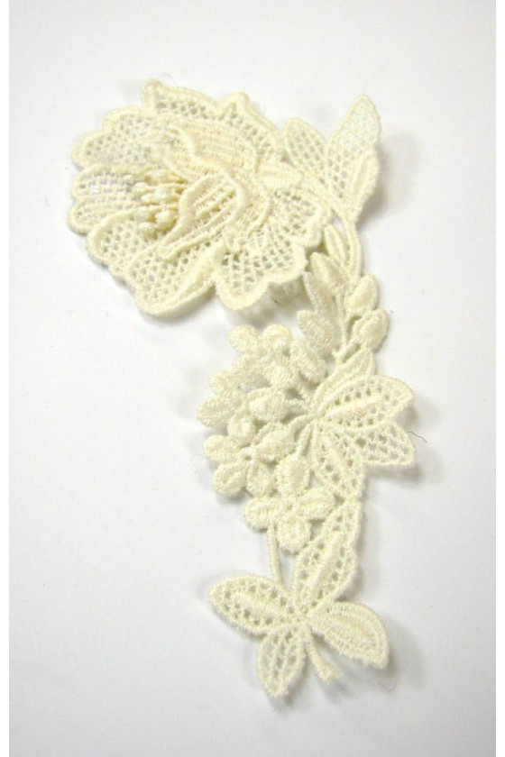 Galanterijos gėlių aplikacija ecru spalvos - siuvimui ir siuvimui.