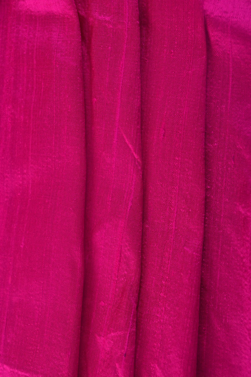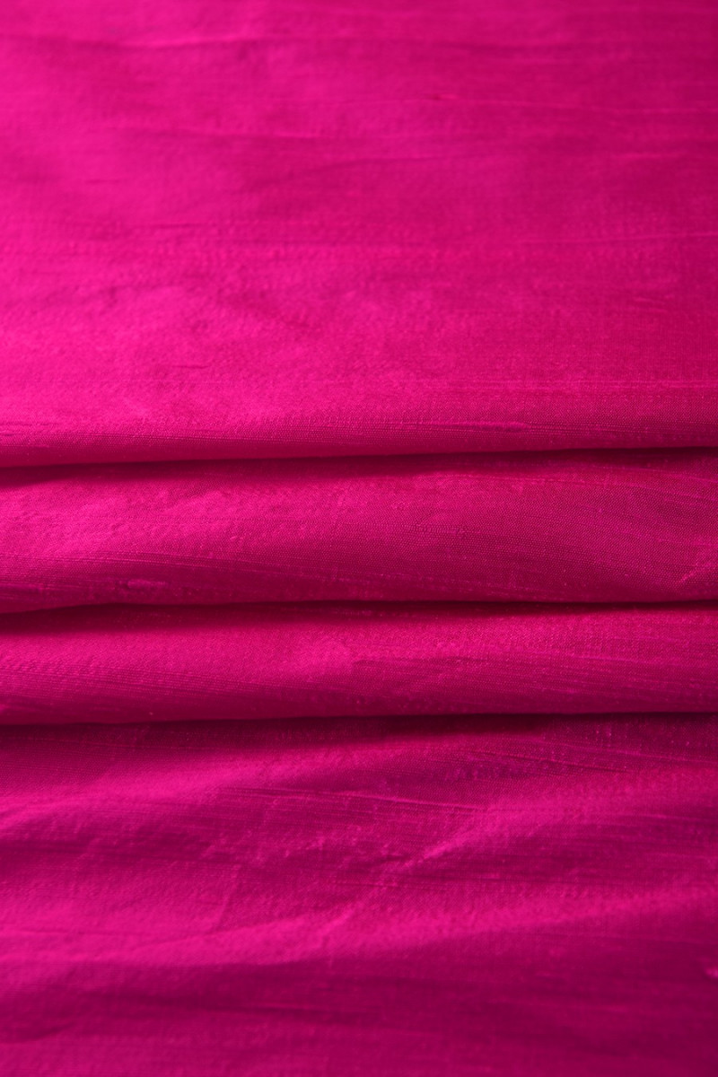"Shantung" šilkas su klasikiniu, originaliu pynimu su intensyvios rožinės-rožinės spalvos "barbs" yra laisvai austas audinys, dažytas natūraliai. Tik sausas valymas!