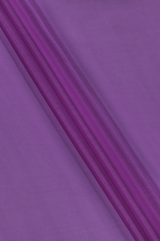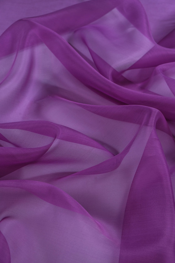 Itališkas 100% šilko organzos audinys violetinės spalvos. Natūralaus šilko organza yra plonas, skaidrus, bet standus audinys, pasižymintis subtiliu blizgesiu, būdingu šilko audiniams. Puikiai tinka siūti suknelę, palaidinę, marškinius, sijoną.
