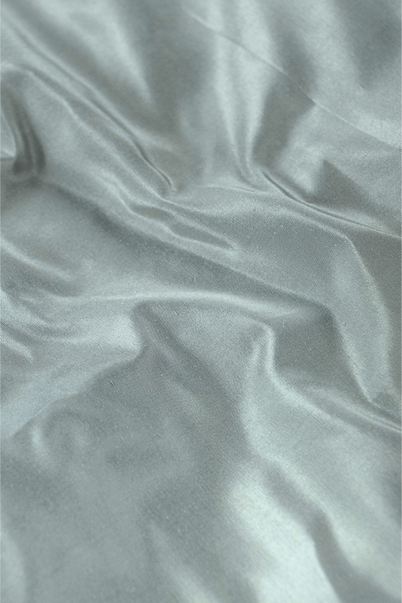 Itališkas 100% šilko taftos audinys pilkos spalvos. Natūralaus šilko taftas yra plonas, bet standus audinys, pasižymintis subtiliu blizgesiu, būdingu šilko audiniams.