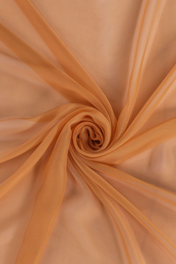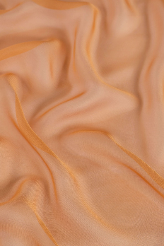 Itališkas 100% šilko audinys su akių pynimu šviesiai raudonos spalvos. Audinys yra plonas, skaidrus, erdvus, labai subtilus ir lengvas. Puikiai tinka siūti suknelę, palaidinę, sijoną ar skarą.