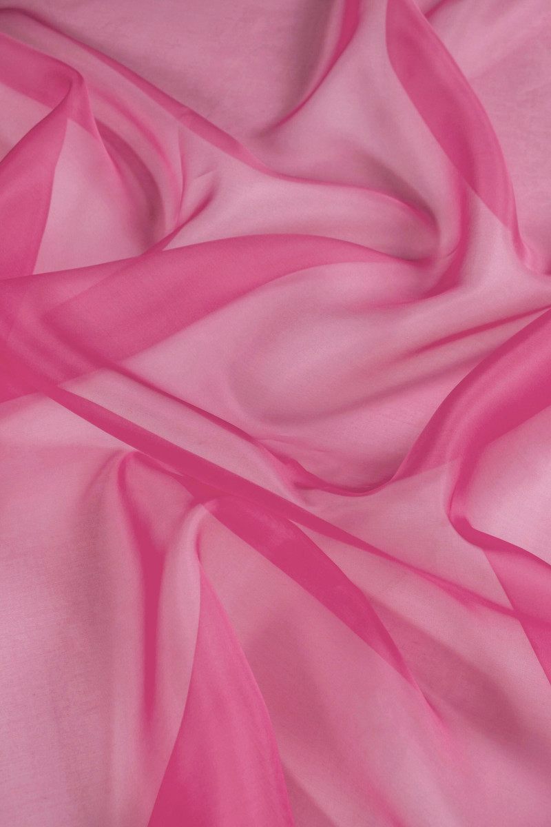 Itališkas 100% šilko organzos audinys fuksijos spalvos. Natūralaus šilko organza yra plonas, skaidrus, bet standus audinys, pasižymintis subtiliu blizgesiu, būdingu šilko audiniams. Puikiai tinka siūti suknelę, palaidinę, marškinius, sijoną.
