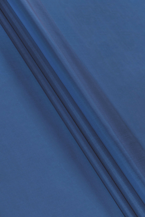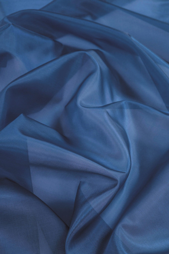 Itališkas 100% šilko organzos audinys rugiagėlių mėlynos spalvos. Natūralaus šilko organza yra plonas, skaidrus, bet standus audinys, pasižymintis subtiliu blizgesiu, būdingu šilko audiniams. Puikiai tinka siūti suknelę, palaidinę, marškinius, sijoną.