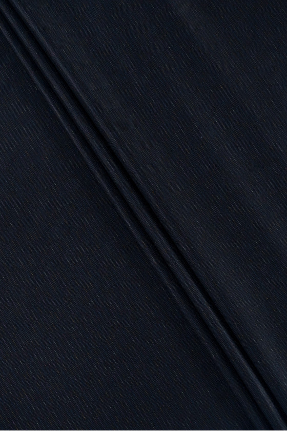 Itališkas trikotažinis megztas juodos spalvos audinys su spalvingų juostelių motyvu. Džersio megztas audinys yra dengiamasis audinys su tankiu pynimu, elastingas, švelniai aptrauktas, kurį galima siūti be pamušalo.