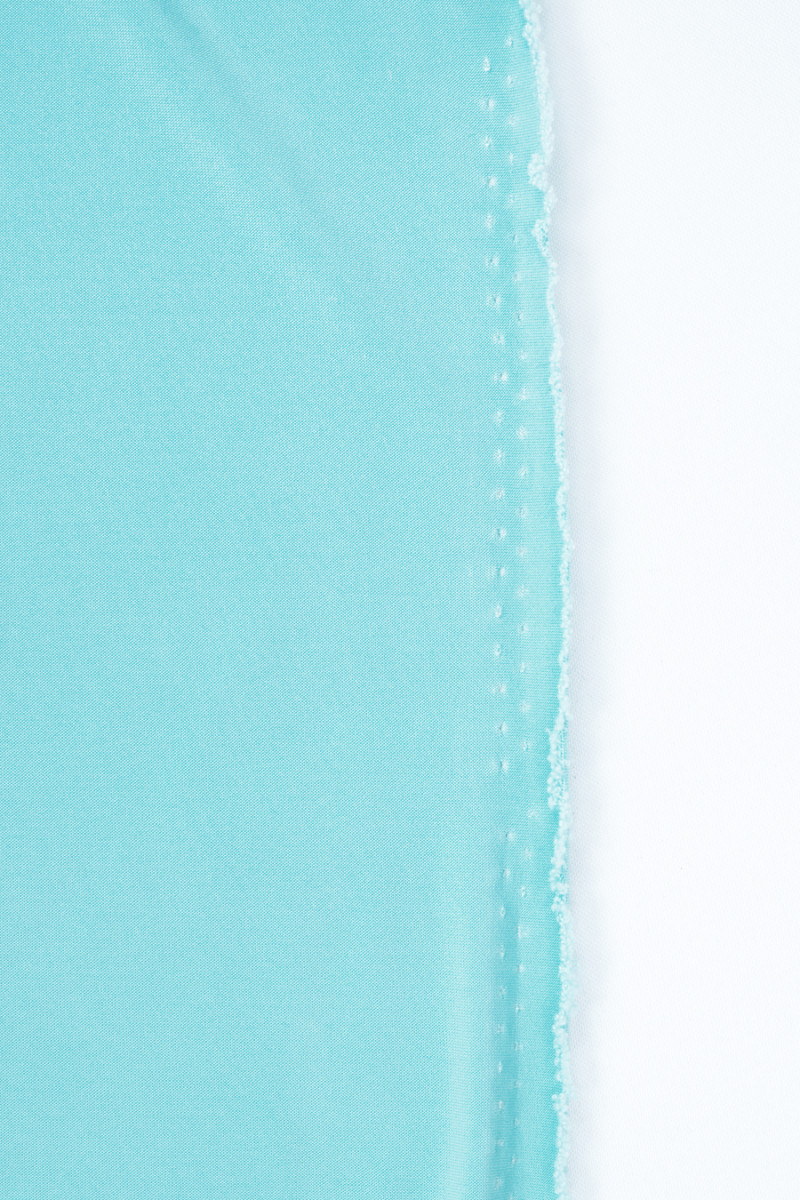 Itališkas poliesterio megztas audinys iš lengvo turkio. Megztas audinys su kompaktišku, lygiu pynimu, elastingas abiem kryptimis, šiek tiek blizgus dešinėje pusėje.