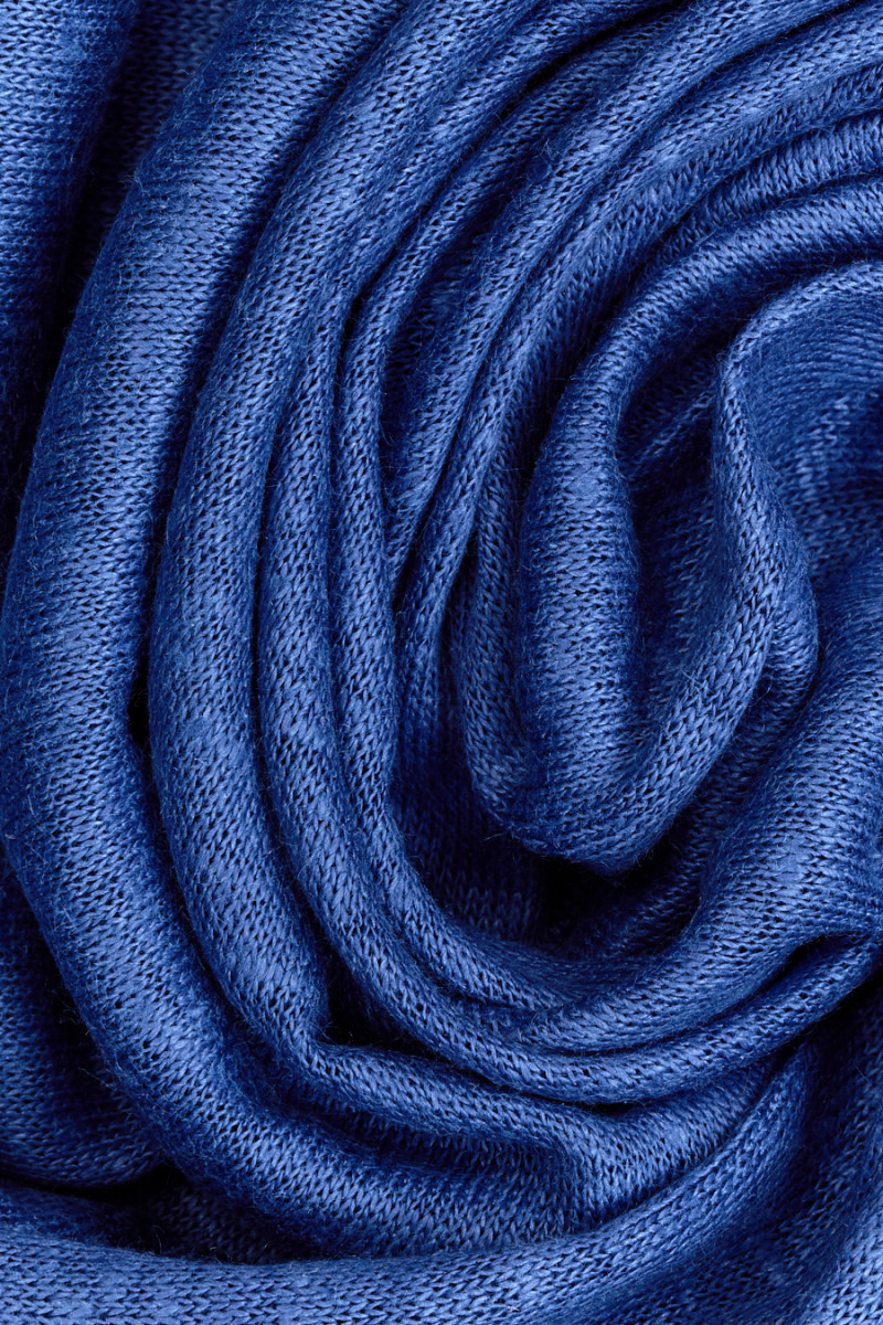 Itališkas rugiagėlių mėlynas linas ir viskozės megztas audinys. Megztas audinys yra plonas, minkštas, malonus liesti, šiek tiek skaidrus ir elastingas. Medžiaga, skirta palaidinėms, marškinėliams, marškinėliams.