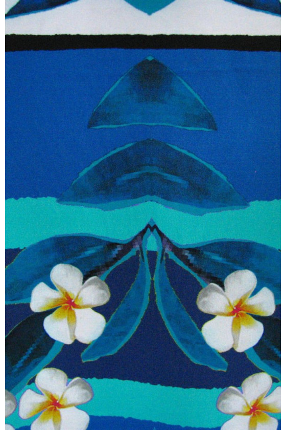 Itališkas likros megztas audinys, kurio kupono dydis 135cm*140cm. Labai įdomus gėlių raštas šviesiai tamsiai mėlyname fone.