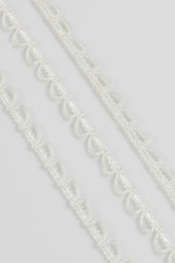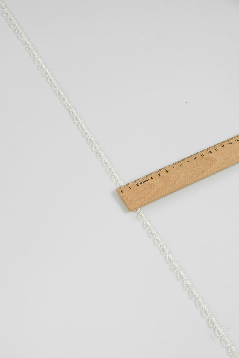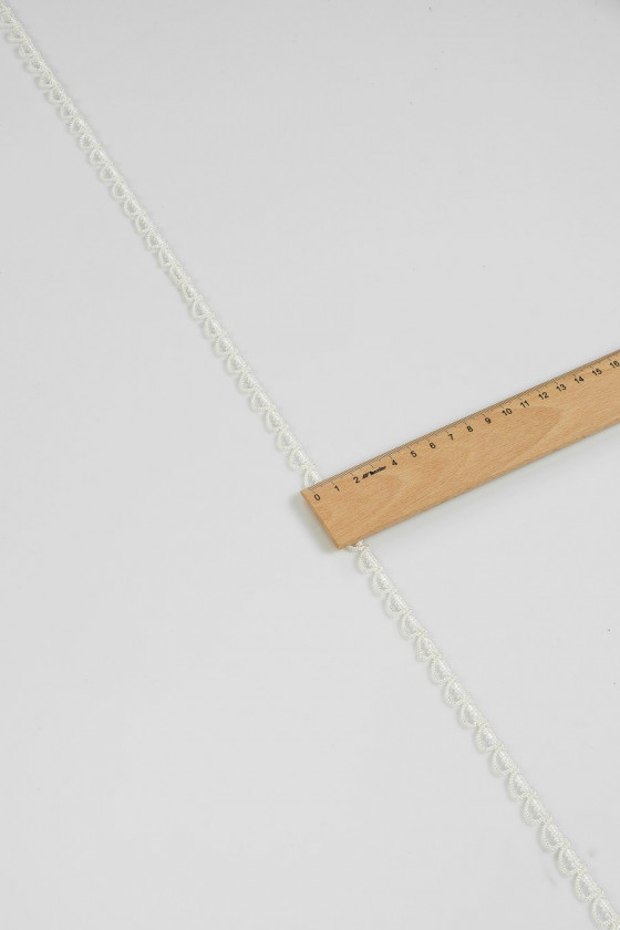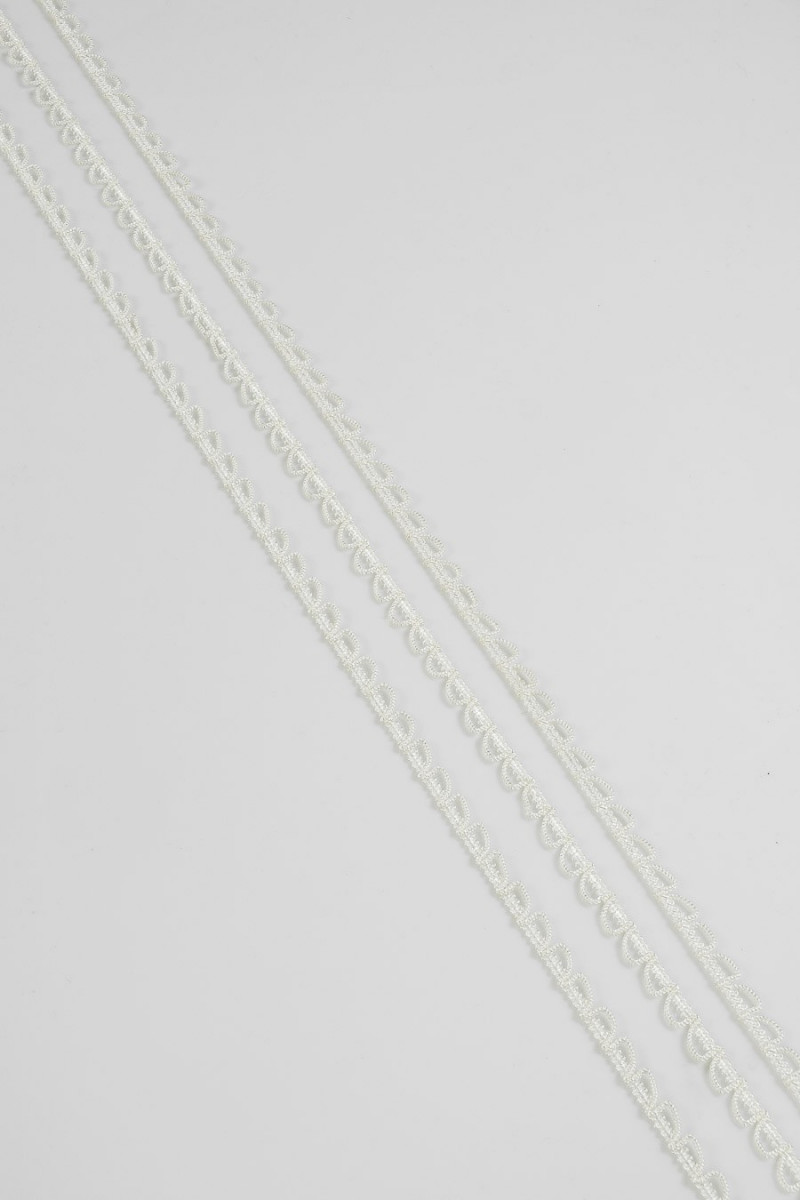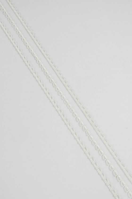 Itališka galanterijos juosta kreminės spalvos, pagaminta iš styginių.