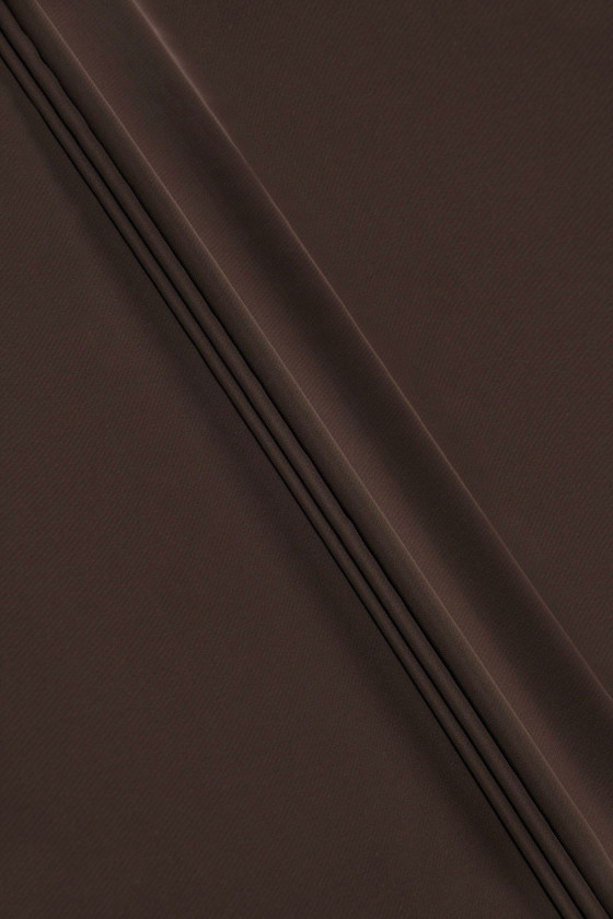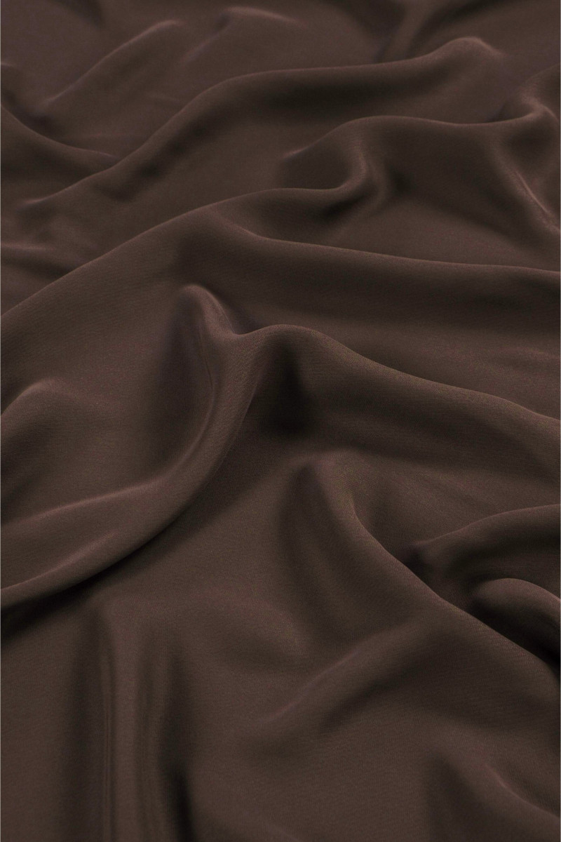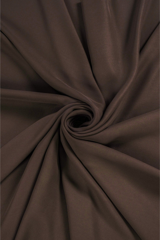Itališkas 100% viskozės cadi audinys rudos spalvos. Sunkus, tekantis, matinis audinys su laisvesniu pynimu (reikalingas pamušalas).
