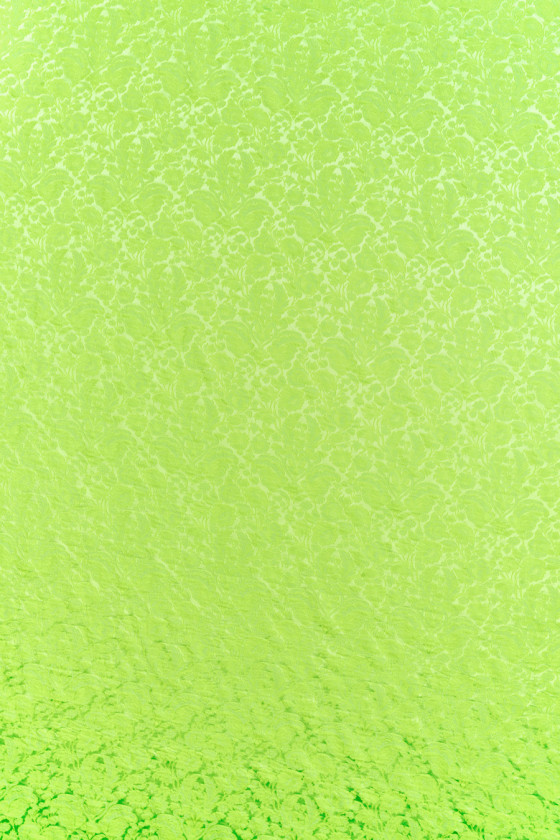 Itališkas žakardo audinys neoninių kalkių spalva, austas paisley modeliu. Audinys yra austas išgaubtu modeliu su satino matiniu paviršiumi, kuris suteikia jam elegancijos. Dėl savo elastingumo jis gali būti naudojamas siūti labiau pritaikytus drabužius, tokius kaip: suknelės, sijonai, kelnės ar švarkai.