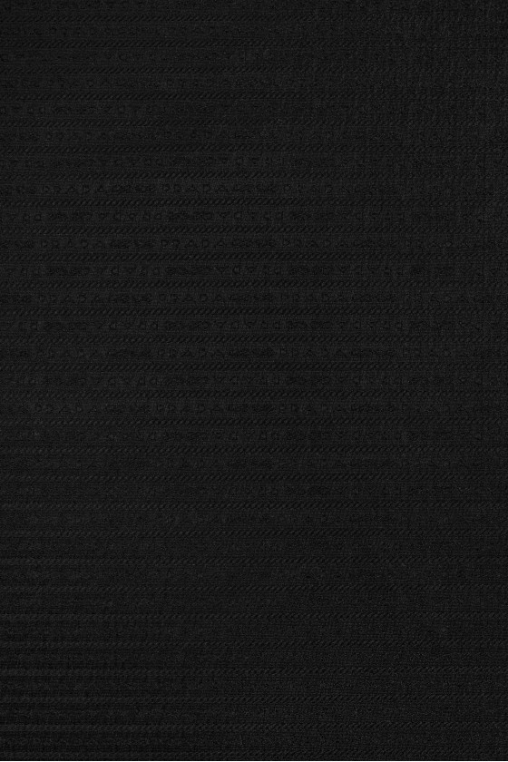 Itališkas žakardo kostiumo audinys juodos spalvos su mažais raštais. Audinys pasirašytas gerai žinomų mados namų pavadinimu. Audinys yra storesnis, standus, neelastingas. Puikiai tinka suknelės, kostiumo, sijono siuvimui ar dekoratyviniais tikslais.