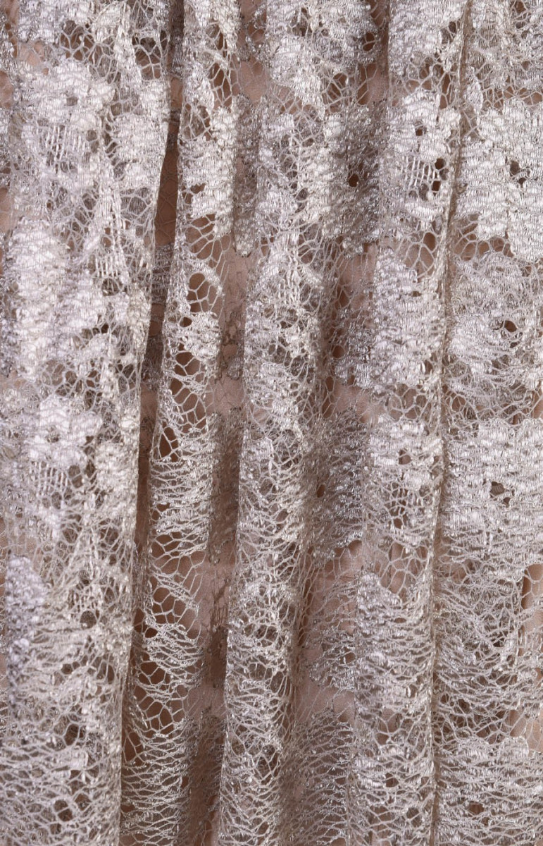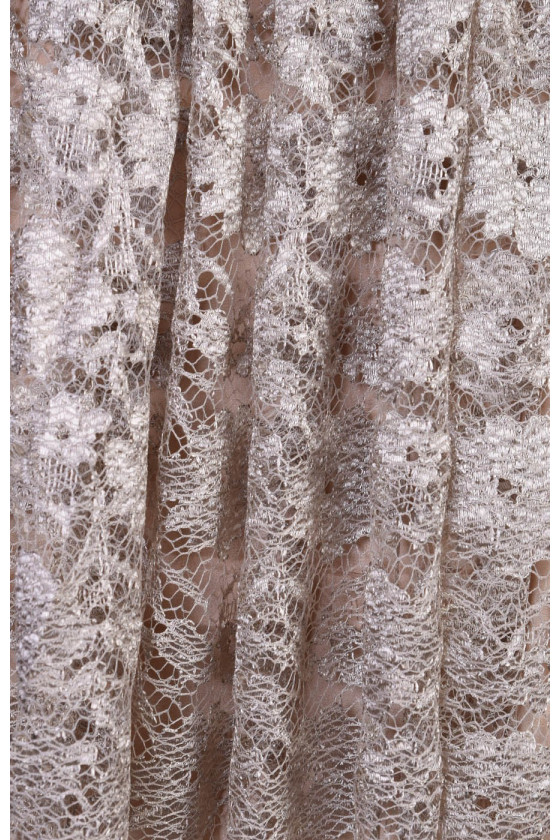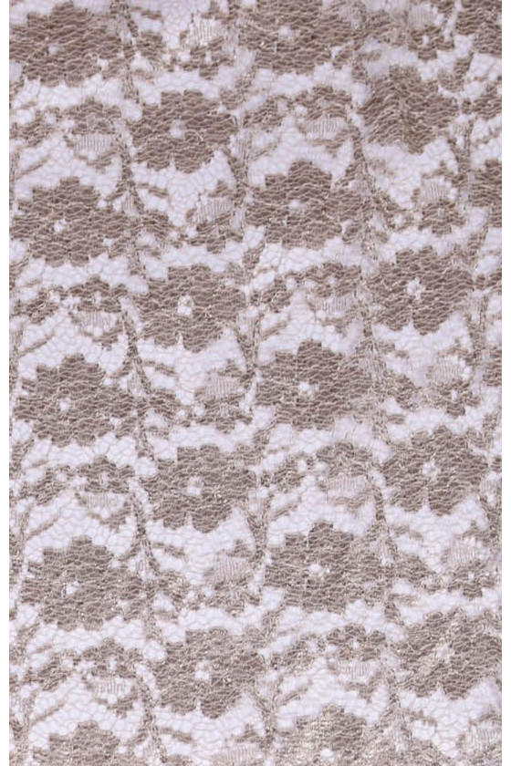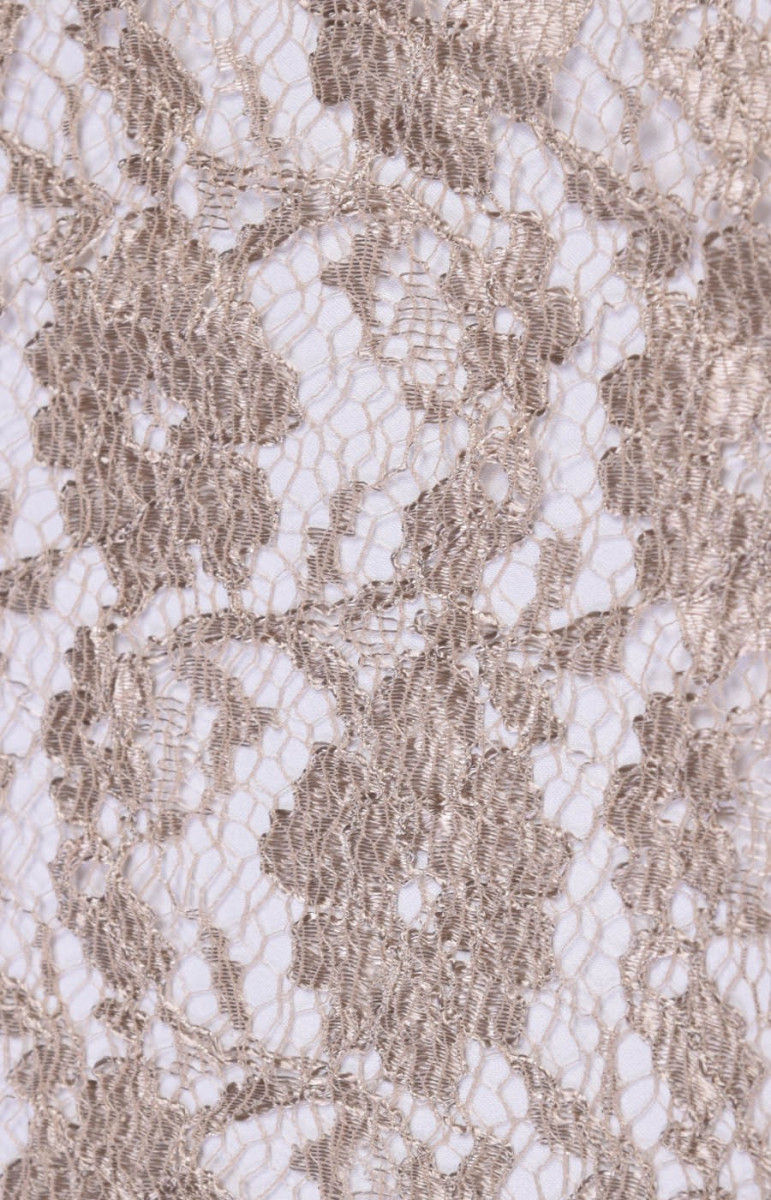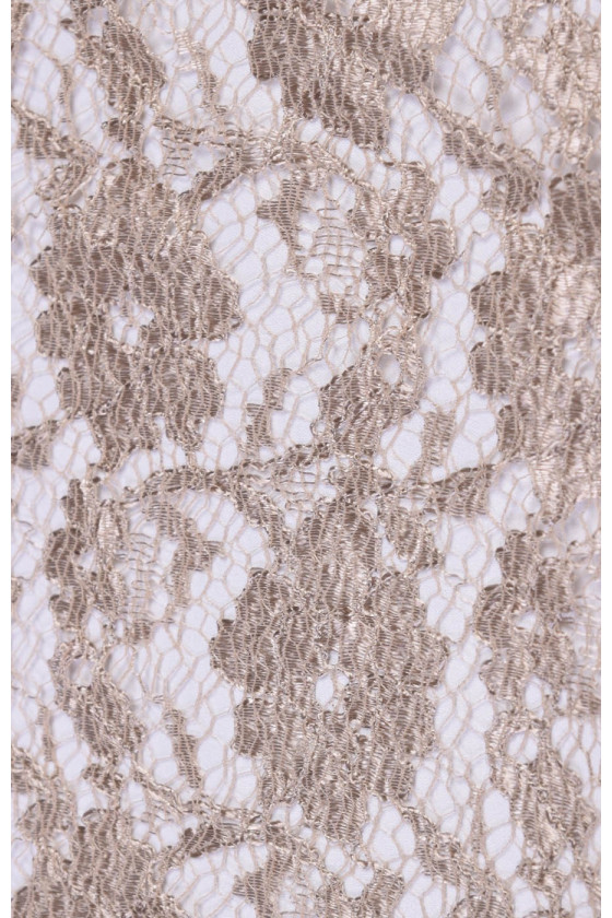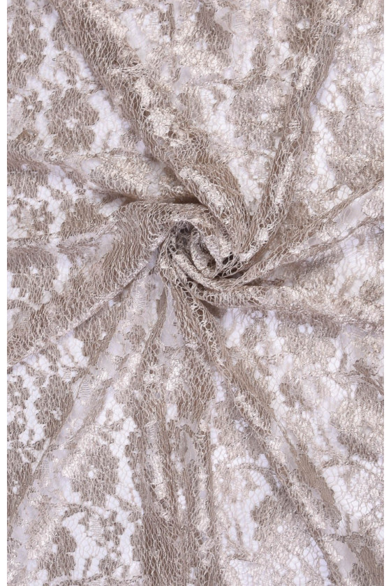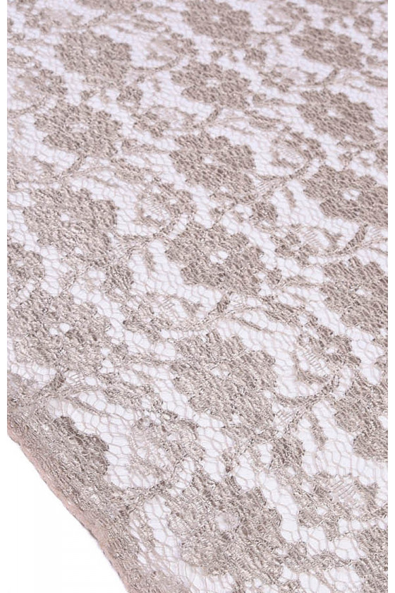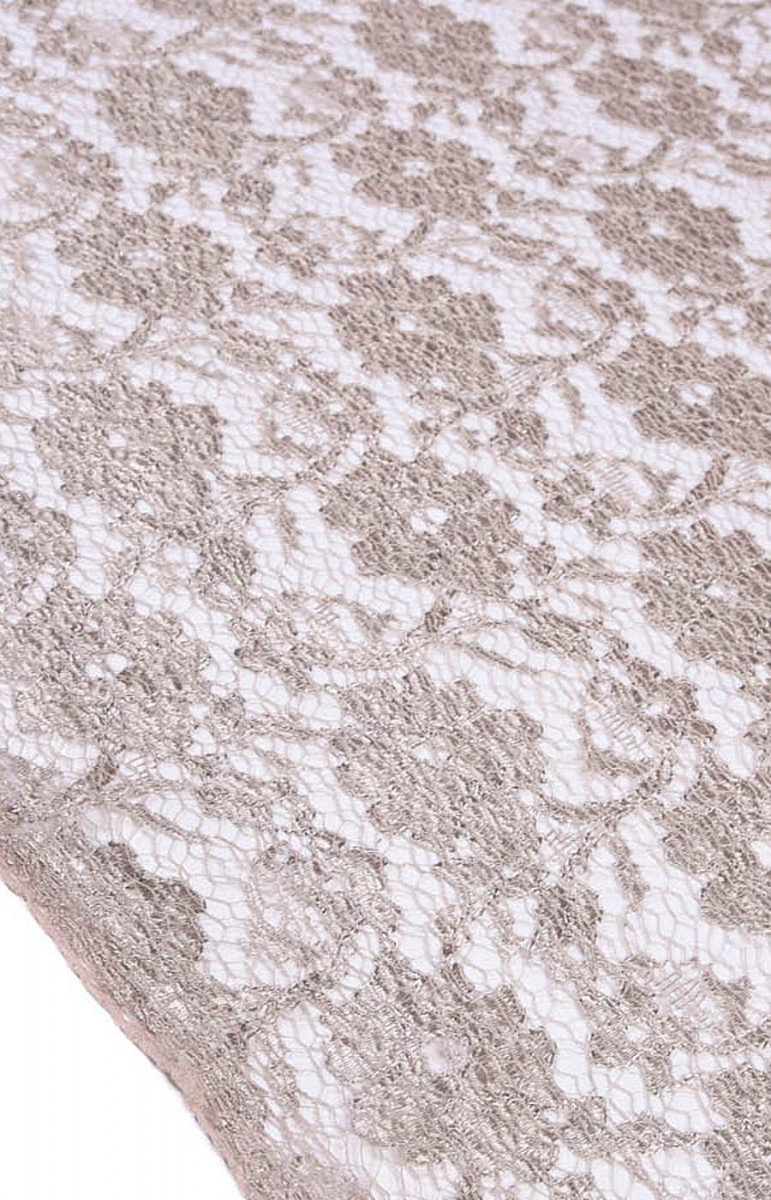Tankiai siuvinėti nėriniai su gėlių modeliu šaltoje smėlio spalvos.
