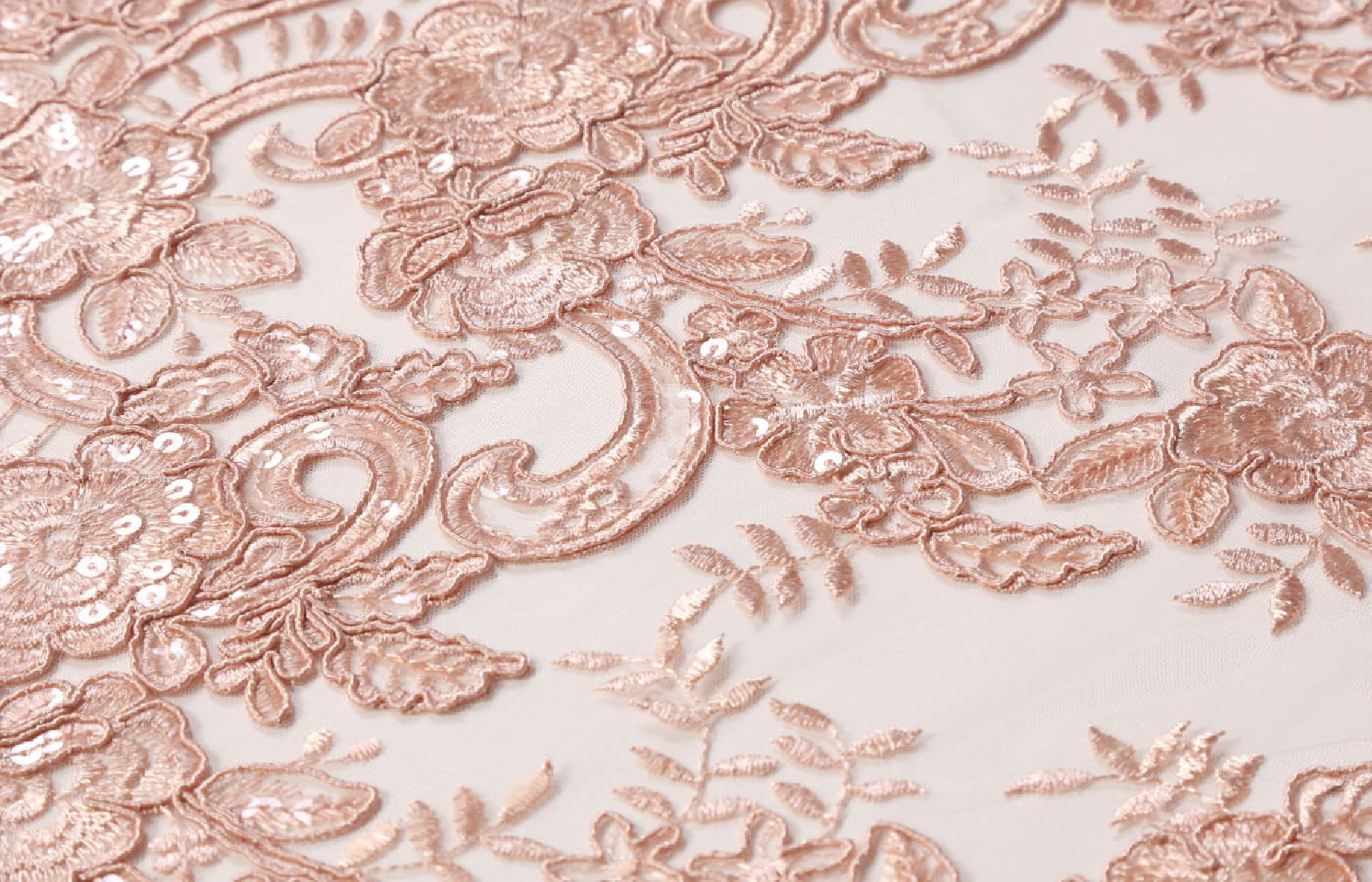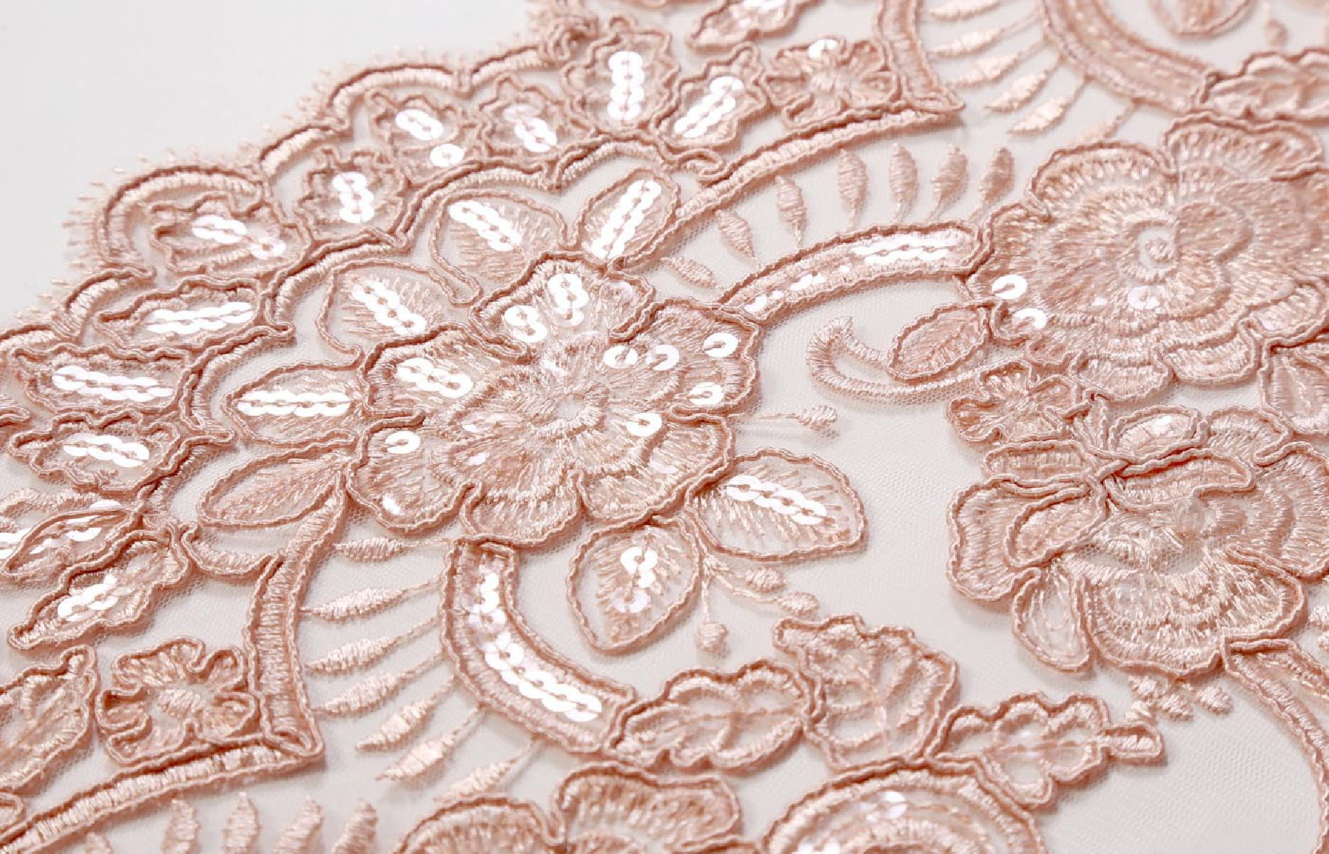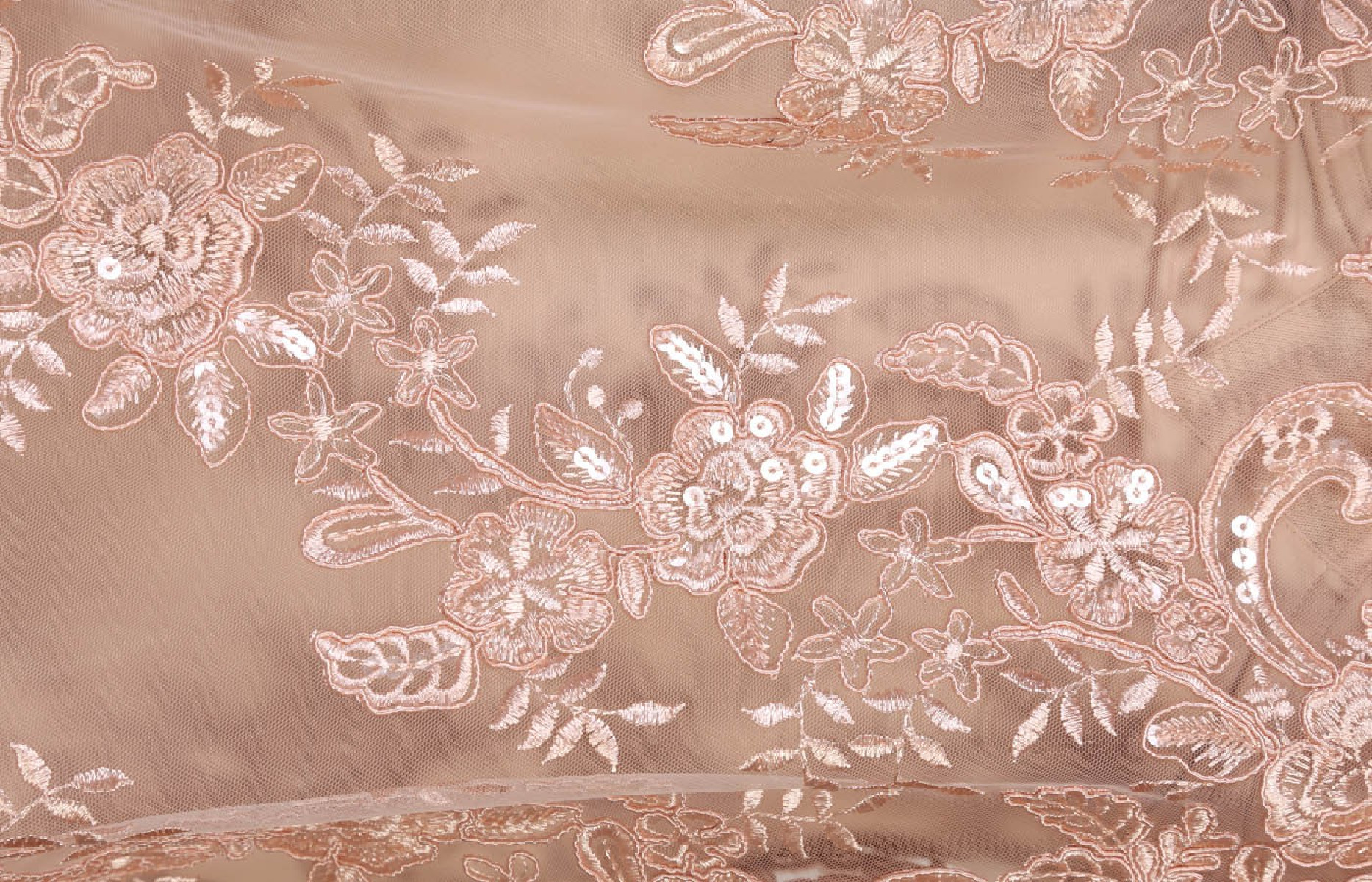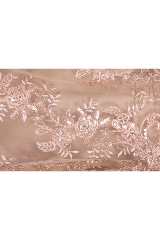 Gražus vakaro audinys. Siuvėti raštai ant tiulio. Siuvami blizgučiai. Puikiai tinka palaidinei ar suknelei - siuvame ją perimetriškai.
